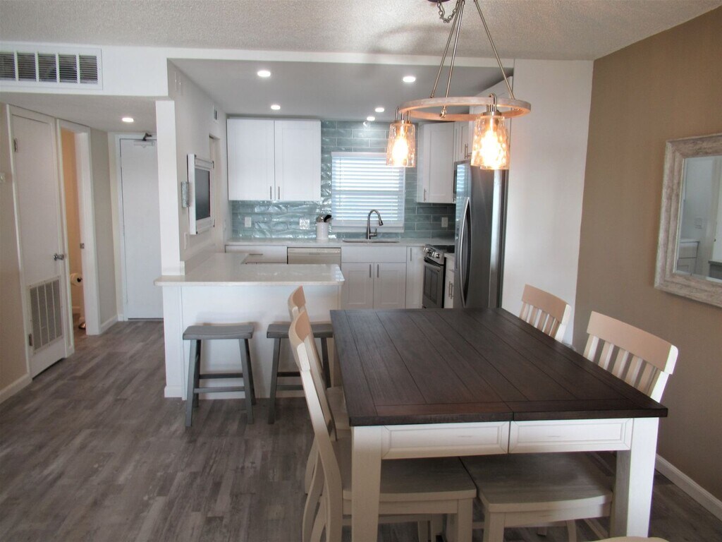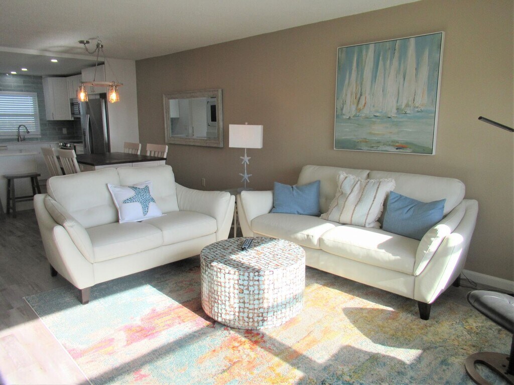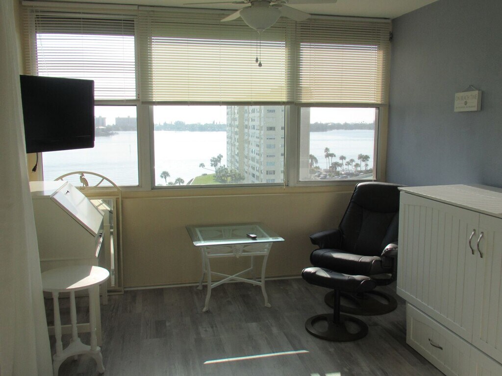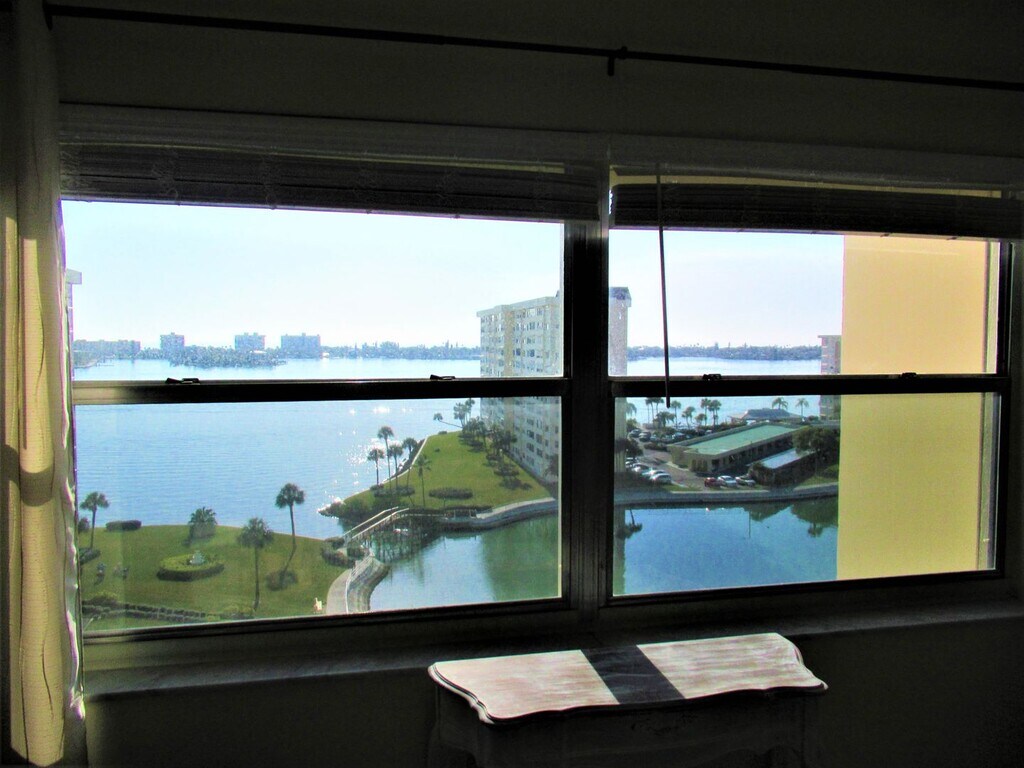 Wow! Fabulous views from this UPDATED/RENOVATED 10th Floor condo at lovely SEA TOWERS active 55+ gated entry condo community! This is a minimum SIX-SEVEN MONTH LEASE available MAY 1, 2026 - Dec. 31, 2026 approx (dates are flexible). Open floor plan featuring newer kitchen with white cabinets, stainless appliances, quartz counters and beautiful turquoise backsplash with bar/counter seating and dining area. Living area has beautiful water views of Boca Ciega Bay, leather sofa & loveseat combo with flat screen tv, large bedroom with KING bed, tv, walk-in closet and renovated en suite bathroom with double sink vanity and step-in shower. LVP flooring throughout. EXTRA BONUS SPACE doubles as guest sleeping area/home office with water views. Half "powder bath" all newer and updated! Newer Central H&A system, and community laundry room (no charge to tenant) just steps away for your use. Covered parking space under carport as well as water/sewer/garbage/cable/Internet & WiFi all included in the rent. Tenant pays electric. Sea Towers is a 55+ community full of amenities such as two heated pools, covered picnic area with grills, walking trail, kayak launch, tennis/pickleball, clubhouse with billiards/fitness/stage & library. Sorry, NO PETS are allowed. Tenant must pass credit check/crim. background check and register with association. Security deposit is one full month's rent. Grocery, shopping, banking just down the street. Beaches and restaurants, John's Pass all close by. AVAILABLE MAY 1, 2026-DEC. 31, 2026!