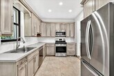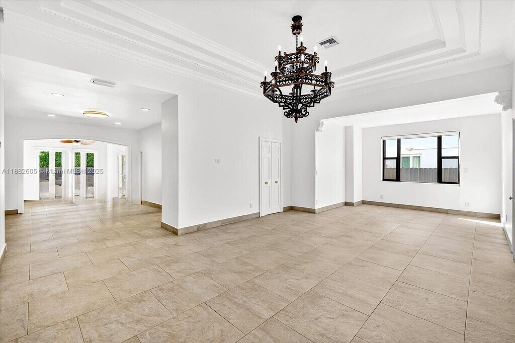 Renovated Miami Beach pool home with 5 ensuite bedrooms plus powder room, soaring 18-ft ceilings, impact windows, and natural light throughout. Designer kitchen with top appliances, formal dining, and spacious living areas. Features include baroque details, Google Nest, newer roof, A/C, and metal fence. Enjoy the gorgeous pool and prime Mid-Beach location—walking distance to Pine Tree Park, JCC, shops, and North Beach Elementary, with easy access to South Beach, Design District, and more.