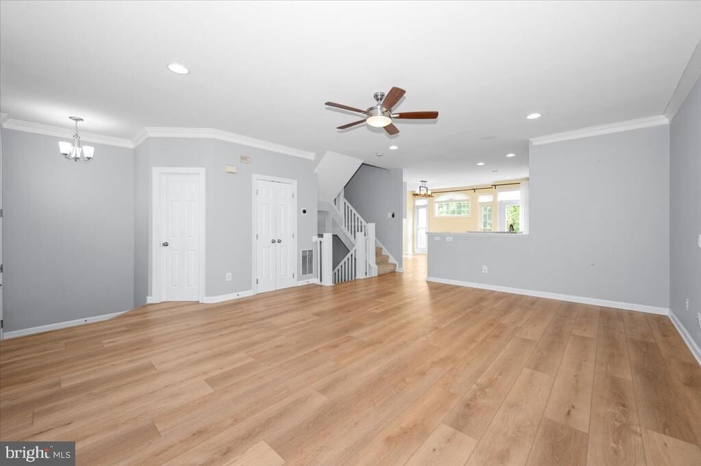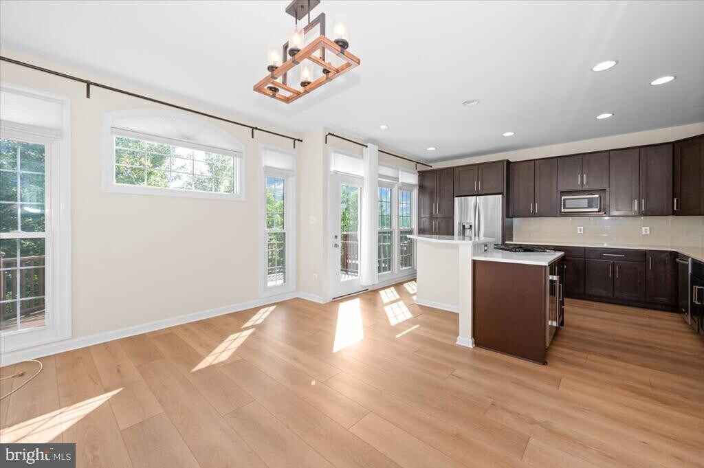 This beautifully maintained townhouse will be available for rent starting December 1st, 2025. Step inside through the elegant arched front door and be greeted by bay windows that fill the home with natural light. The main level features a powder room, a spacious coat closet, and an open-concept layout with updated flooring, recessed lighting, and a warm, inviting ambiance. The modern kitchen is equipped with quartz countertops, stainless steel appliances, a gas range, and ample cabinetry for storage. The adjacent dining area seamlessly connects to the kitchen, creating the perfect setting for entertaining. With approximately 2,200 square feet of thoughtfully designed living space, this home offers comfort and style throughout. The primary suite boasts vaulted ceilings, a walk-in closet, and a luxurious en-suite bath complete with a double vanity, soaking tub, and separate shower. Bedrooms 2 and 3 are generously sized and feature ceiling fans, while the upper-level laundry adds convenience to your daily routine. The lower-level recreation room (or optional 4th bedroom) includes a full bath and opens directly to a low-maintenance backyard, beautifully finished with concrete so you can say goodbye to mowing! Enjoy peaceful lake views from the deck off the main level, a perfect spot to relax or entertain guests.