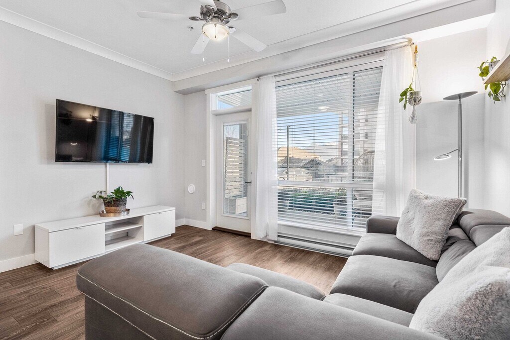 Bright & Spacious Open-Concept 1 Bed + Den Condo in Sardis — 2 Parking, In-Suite Laundry, Great Location! Welcome to this inviting home in the desirable Sardis community of Chilliwack. The location is perfect for individuals or couples seeking both comfort and convenience. Situated within walking distance or just a short drive from schools, shopping, grocery stores, transit, and walking trails.Property HighlightsModern, well-maintained building in central SardisClose to transit, parks, walking trails and community amenitiesMinutes to major grocery stores, retail, and diningTwo parking stalls -One spot below and one up top. Guest pass is providedOne small pet allowedLocal Amenities & AttractionsSchoolsSardis Secondary SchoolVedder Elementary SchoolVedder Middle SchoolMt. Slesse Middle SchoolUniversity of the Fraser Valley — Canada Education Park campusGrocery & ShoppingSave-On-FoodsReal Canadian SuperstoreCottonwood MallChilliwack MallPharmacies, local markets & retail plazasRestaurants & CafésSushi NabiEarl’s Kitchen + BarWaves Coffee HouseGarrison BistroCoconut Thai RestaurantFiLa DeliTriple O’sFreshiiRecreation, Parks & TrailsCheam Leisure Centre (pool, fitness, community programs)Walking trails and green spaces throughout SardisNearby river, parks, and outdoor recreation areas This spacious 1-bedroom + den, 1-bathroom condo offers both comfort and convenience. The bright, open-concept layout provides approximately 735 sq ft of thoughtfully designed living space. Enjoy the added benefits of in-suite laundry, a private deck, and two parking stalls.Unit FeaturesOpen-concept living space Den perfect for a home office or extra storagePrivate deck In-suite washer & dryerKitchen equipped with fridge, stove/oven, dishwasher, microwaveComfortable flooring with quality finishesAir conditioningWalk-in closet Utilities & services included: garbage collection and sewage disposalLease Terms & Requirements1-year lease termMinimum $2M renters insurance requiredNo smokingCredit check and proof of income required