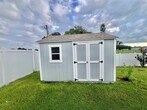 Available now! Beautiful 4-bed,2-bath single-family home in Gramercy Farms featuring an open-concept great room with large-format tile,recessed lighting,ceiling fan,and sliders to a covered patio. The chef's kitchen offers granite counters,cabinetry,tile backsplash,stainless steel appliances,and an oversized island with pendant lights. The bright primary suite showcases wood-look flooring,a dual-sink vanity,walk-in shower,and a generous walk-in closet. Three additional bedrooms include ceiling fans and closets. Enjoy a fully fenced backyard with a storage shed,an epoxy-floor 2-car garage,and an interior laundry room with washer/dryer and built-in shelving. Community amenities include parks,playgrounds,walking trails,and a dog park. Conveniently located minutes to the Turnpike and close to schools,restaurants,and local shopping—space,style,and everyday convenience in one package. Additional fee applies for monthly lhy lawn maintenance. Inquire today to schedule your showing. MLS# S5135832