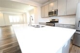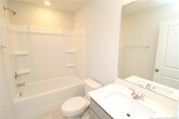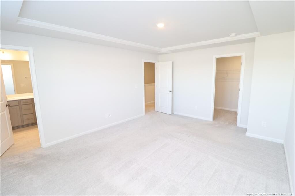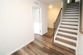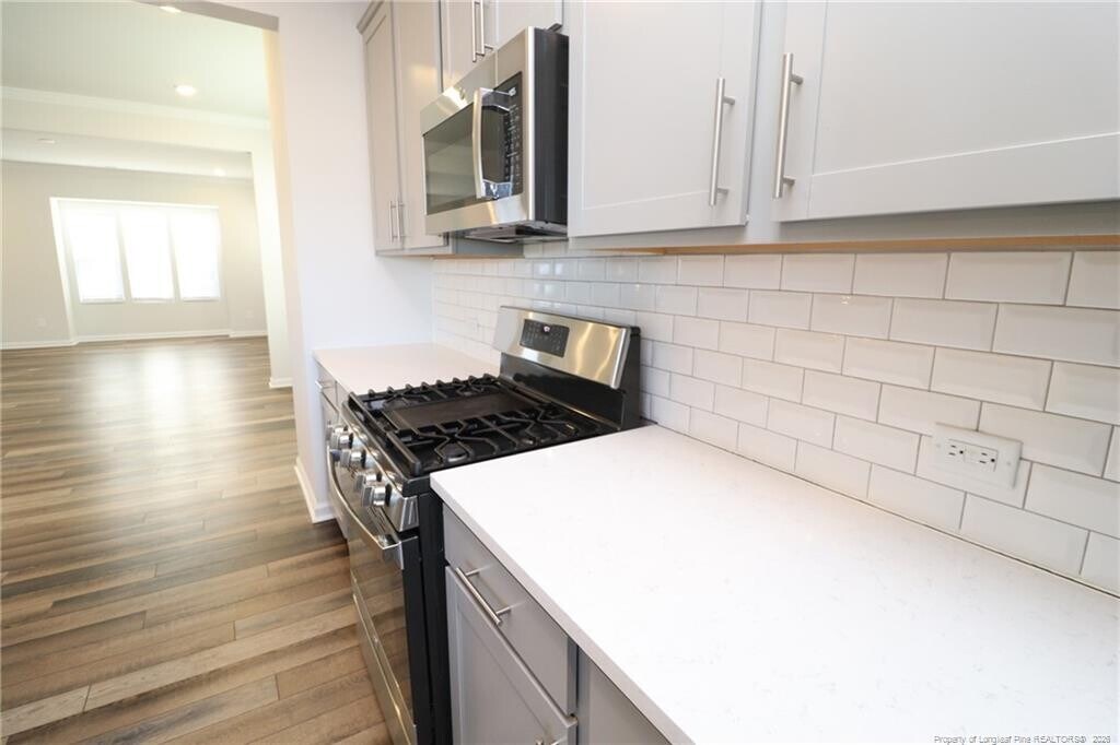 This immaculate and luxurious townhome is available immediately and nestled in Apex's Carolina Springs neighborhood. Come visit today and prepare yourself to fall in love! Ample street parking in front of the home will greet your guests where they can enter via a covered front porch. Residents enjoy alley access to an attached garage with a long driveway behind the home. The foyer opens on one end to the street parking, and on the other, direct access to the garage. The first floor also includes a spacious bedroom with double windows, a large closet and a full bathroom right around the corner. If a 4th bedroom is not needed, this space could alternatively be utilized as a home office, a media room, a dedicated exercise space, etc.; the possibilities are truly endless! A quick jaunt to the second floor and you're invited into an open-concept living area that's home to the family room, a centrally-located dining space, and the kitchen. The entire second floor boasts beautiful and durable luxury plank floors; not a stitch of carpeting to be found. In the front half of the second floor is a spacious family room with a multitude of windows, recessed lighting and a design that lends itself to easy furniture placement too! The centrally-located dining area seamlessly blends together the kitchen; this arrangement is perfect for casual living and entertaining alike. Then we have the kitchen which is a sight to behold and the builder spared no expense with ultra high-end finishes and fixtures. The kitchen is anchored around an impressingly large quartz-topped island with an integrated breakfast bar and undermount stainless-steel sink. The gorgeous gray kitchen cabinets, striking quartz counters and subway tile backsplash all go perfectly together and combine to create a truly classy and functional space. There are a multitude of upper and lower wall-mounted cabinets as well as cabinetry under the island and a large pantry. Sleek stainless appliances (including a gas oven) and recessed LED perimeter lighting round out the kitchen experience. Here, you'll also find a private, elevated deck that offers a lovely view as well as invaluable outdoor living space. At the top floor, you're greeted by a landing area with a conveniently-located laundry room, half bathroom, and 3 more bedrooms. The primary suite is quite spacious and features lovely natural light, a walk-in closet and a luxury bathroom with a custom-tiled walk-in shower, tile flooring and an elevated, satin finish marble-topped vanity with dual undermount sinks. Bedroom #2 and #3 are generously proportioned and also enjoys the use of a walk-in closet and its own en-suite full bathroom. This wonderful design means all three bedrooms have easy access to their own full bathrooms.