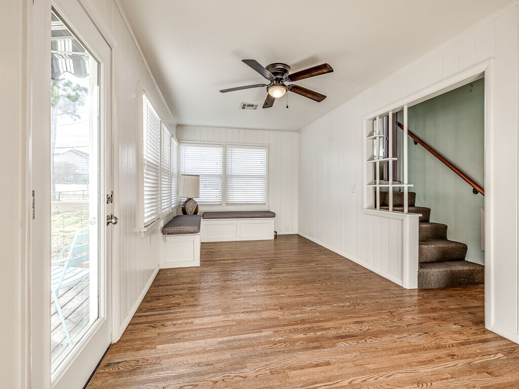 This updated Midtown bungalow is located in the Turner Park area, directly across from the University of Tulsa campus, with Downtown Tulsa just 10 minutes away and easy access to Route 66, the 11th Street corridor, and dining and local favorites along Harvard. The main level flows between living, dining, and kitchen spaces with original hardwood floors and excellent natural light. The updated kitchen features quartz countertops, stainless steel appliances, and soft-close cabinetry. The home offers three bedrooms, one full bathroom, and two compact half-baths. The home provides lots of flexible spaces for a second living area, office, gym, or studio, along with a large laundry room that can also serve as flex space. A large, climate-controlled semi-finished lower level connects directly to the home and is usable year-round for a workshop, home gym, hobby space, or organized storage. Outside features include a spacious deck, a nicely sized yard, and a covered carport for off-street parking. Appliances included are washer, dryer, microwave, and filtered on-demand hot/cold water dispenser. A rare Midtown rental combining character, flexibility, and location, offering more usable space than most homes this close to campus and city amenities. Security and pet deposits apply. Students welcome- alternative qualification options available.