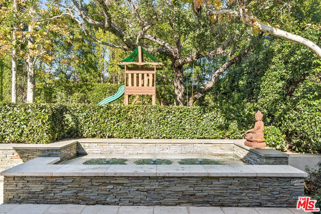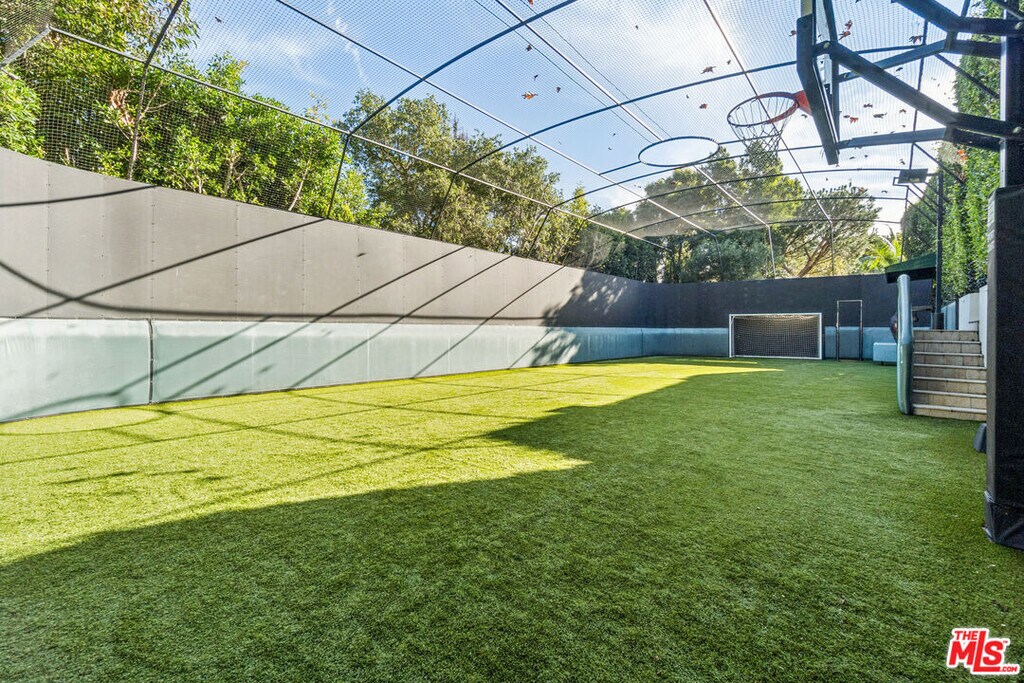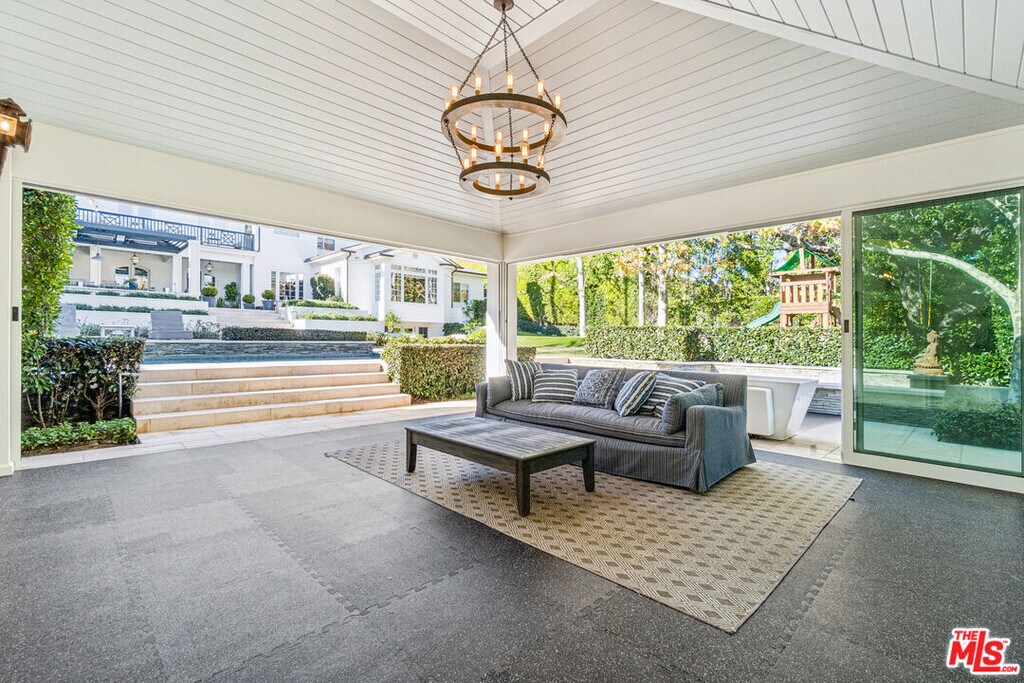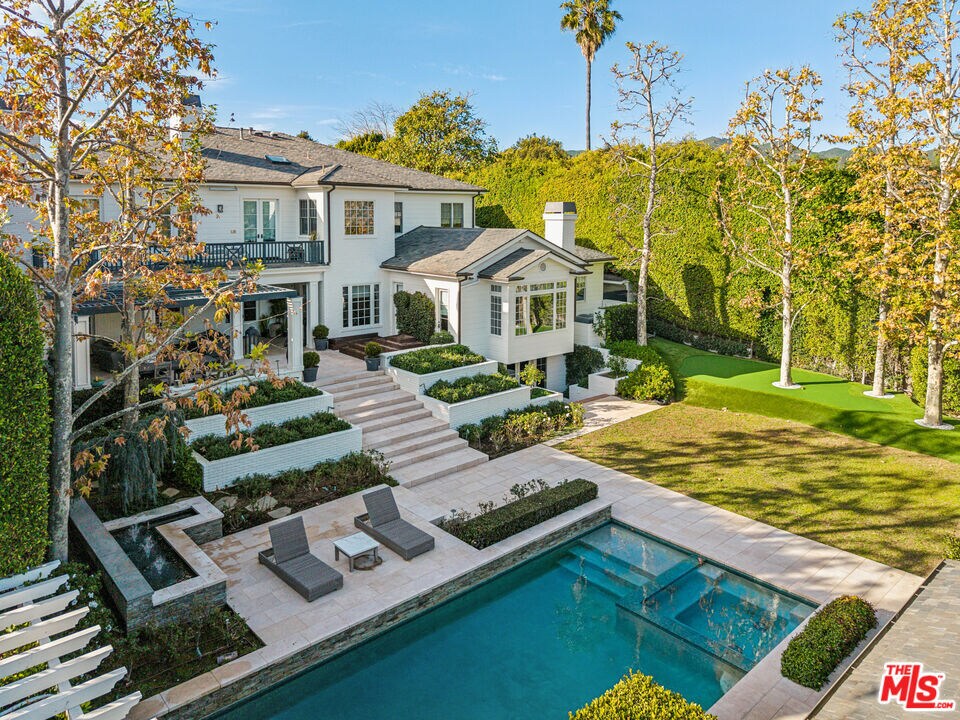 Arguably one of the most special homes in the Huntington Palisades, this property offers six (6) en-suite Bedrooms and a highly favorable floor plan. Spanning three levels, the home features beautiful public rooms with wonderful ceiling heights throughout. Set on an approximately 25,000-square-foot lot, the property includes all the exterior amenities expected at this level. A complete to-the-studs remodel in 2017 introduced a New Kitchen, Movie Theater, Outdoor Dining area, and all new Flooring. The very private grounds are surrounded by mature, lush landscaping on three sides. A large covered patio leads to a built-in BBQ area - perfect for watching games on screen or enjoying the grassy yard, putting green, pool / spa, cabana, and cold plunge. Outdoor activities are highlighted by a sunken sports court, ready for pickleball, soccer, or basketball ! Ideally located close to the park, village, schools, and the Ocean. MLS# 26651249