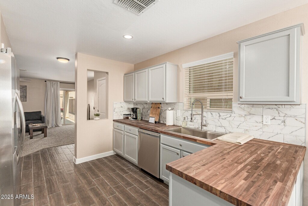 Discover this beautifully updated single-level home in the highly desirable Copper Basin community of San Tan Valley. Featuring 3 bedrooms,2 bathrooms,and a spacious 2-car garage,this property offers the perfect balance of comfort and style. Step inside to find brand-new carpet,remodeled bathrooms,and a modern kitchen complete with butcher block countertops,stainless steel appliances,and fresh finishes that make it truly move-in ready. The open floor plan is ideal for entertaining,while the private backyard provides room to relax and unwind. Living in Copper Basin means you'll enjoy access to a community pool,clubhouse,fitness center,parks,and walking trails,all just minutes from shopping,dining,schools,and major freeways for an easy commute. Don't miss your chance to own this affordable San Tan Valley gemperfect for first-time buyers,families,or anyone looking for a stylish,updated home in a growing community.