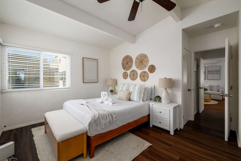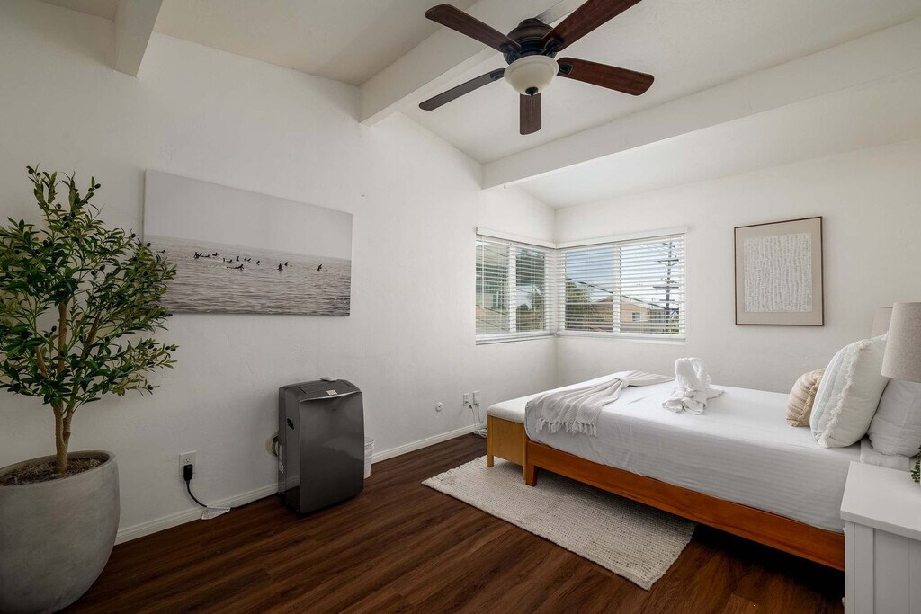 Welcome to this chic 1-bedroom, 1-bathroom condo in a prime San Diego location. With a spacious open layout, this home features a large front patio, high-speed internet, and a smart TV. Enjoy the convenience of free street parking and a fully equipped kitchen, making it easy to feel at home. This spacious 1-bedroom condo comfortably accommodates up to 4 guests. The bedroom features a cozy queen bed, and the living room includes a queen sleeper sofa that easily unfolds into a second bed. Enjoy a cozy open-layout living room with fresh new décor, an oversized smart TV, and plenty of natural light. The adjacent dining area comfortably seats 4, perfect for meals, remote work, or game nights. The fully equipped kitchen boasts brand-new appliances, including a dishwasher and coffee maker, ensuring you have everything needed for a comfortable stay. This property offers free street parking for your convenience. Located just minutes from Newport Ave shops, cafes, and local eats, this condo is ideally situated for exploring San Diego. Enjoy a short drive to Ocean Beach Pier, OB Farmers Market, Hodad’s, Dog Beach, and Sunset Cliffs Natural Park. Further attractions like Liberty Station, SeaWorld, Point Loma trails, Old Town San Diego, Mission Bay Park, Downtown San Diego, and the San Diego Zoo are all within easy reach. This is a home, not a hotel, so please treat the space with love and care. Occupancy limits must not exceed the number listed on your reservation, and extra guests are not permitted to stay past 10:00 PM. A maximum of 3 additional daytime guests are allowed, and all must leave by 10:00 PM. Only small portable speakers at low volume are allowed outside, and any noise complaints may be treated as a violation of city rules. Absolutely no smoking of any kind is allowed on the property, with a $500 fine for violations. Please wash any used dishes, remove excess trash, and return furniture to its original position before checkout. Lock all doors and windows before leaving the home. The dining area comfortably seats 4, making it perfect for remote work with high-speed internet available. Registration Number: STR-11989L