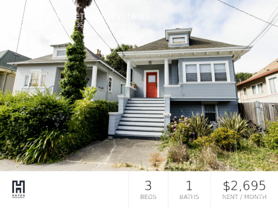 Beautiful lower unit of duplex, within standalone house. Sizable yard, great for entertaining. 10 minute walk to MacArthur BART and 3 great neighborhoods Temescal (Burma Superstar, Temescal Alley!), Broadway, and Piedmont. Walkable to Uptown. House - Approximately 1053 sq ft house + laundry space - 3 bedrooms - 1 bathrooms - 1053 finished sq footage - Plus 150 sq ft laundry room (shared) - Back deck and large front porch - Backyard nice for parking Neighborhood - Lower Temescal neighborhood near Mosswood Park - 3 min walk to: Community yoga, Korea gastropub (open till 1:30am), mini marts and small produce store - Telegraph Ave Temescal has tons of shops - Shops on Broadway (e.g. Brenda’s!) and Piedmont Streets - 10 min walk to MacArthur BART, 6 Bus to both Berkeley campus and Uptown Oakland $2,495 based on receiving 2 months free rent. The list price is $2,994.