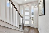 Location,lifestyle,and quality living start here.This beautifully designed end-unit townhome is ideally located just a short walk to Publix,Starbucks,the YMCA,and Nocatee community amenities,offering the perfect balance of convenience and retreat. Enjoy resort-style living in one of the nation's most sought-after master-planned communities,Nocatee. This home features designer finishes,abundant natural light,and thoughtful layout throughout. Upon entry,you are welcomed by a foyer leading to a private and cozy first-floor retreat. The first level offers two spacious bedrooms,each with walk-in closets and full bathroom,providing flexibility and privacy. The second floor is the main living level,featuring an open-concept kitchen,dining,and living area,along with the primary bedroom and laundry facilities. The space is enhanced by soaring 12-foot ceilings and large windows that fill the home with natural light. The living area opens to a screened balcony,ideal for relaxing or entertaining. The kitchen showcases stylish contemporary tile backsplash,medium-tone wood cabinetry,and quality finishes,creating a modern yet timeless aesthetic. The home is fully equipped with appliances,including washer and dryer. Additional highlights include: No carpet high-quality solid flooring throughout Plantation shutters on all windows Epoxy-coated garage floor Water softener system End-unit location for added privacy and light Conveniently located minutes from Atlantic Beach,TPC Sawgrass,and historic St. Augustine,this home offers easy access to coastal living,shopping,dining,and recreation. Residents enjoy access to Nocatee's world-class amenities,including pools,fitness centers,parks,trails,dog parks,and expansive green spaces all within one of Florida's most thoughtfully planned communities. MLS# 2128447