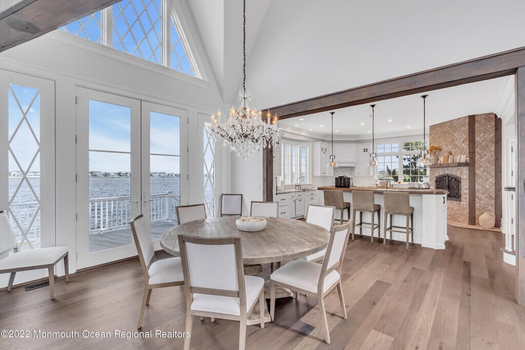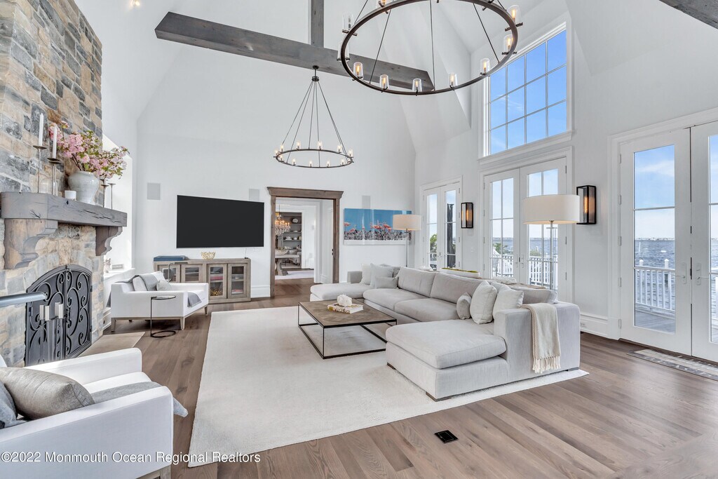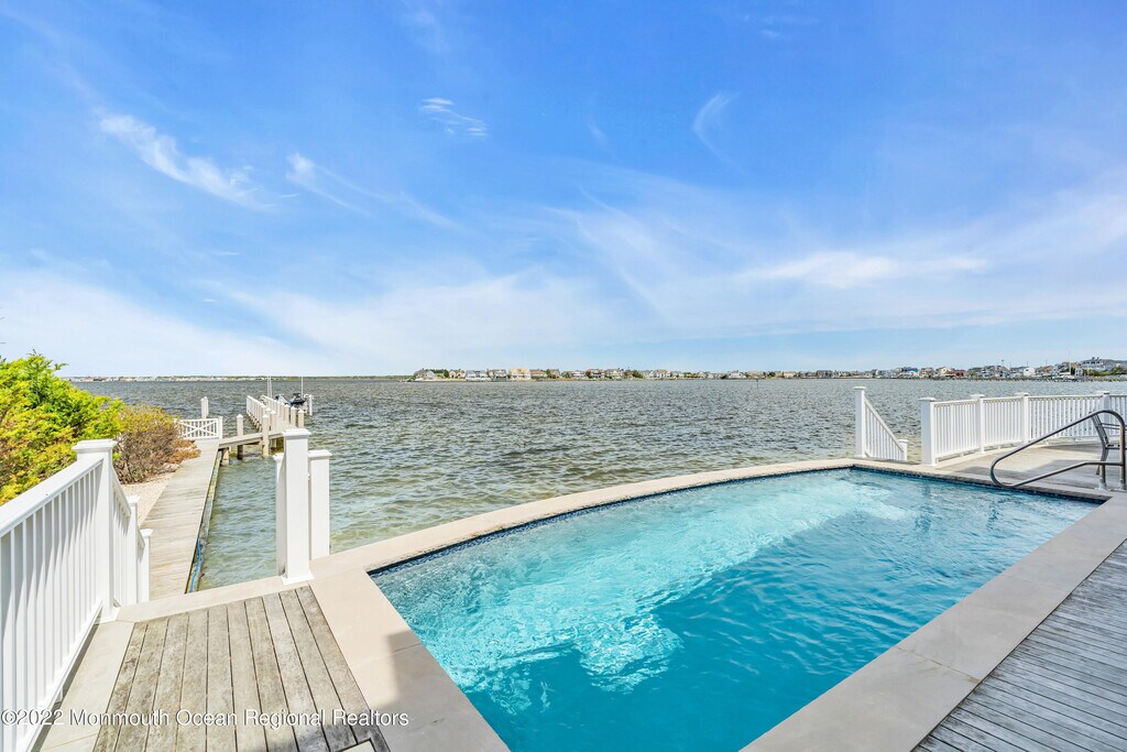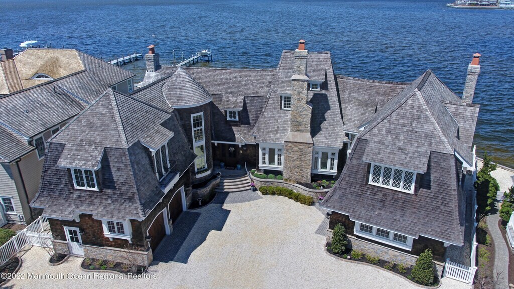 Magnificent bay front home provides a front row seat for watching spectacular sunsets. This custom-built cedar shake home is masterfully built & finished & includes 5 bedrooms,3 full baths & 2 half baths. The Great Room boasts a 30+ foot ceiling w/milled beams from a barn,French oak flooring,3 sets of French doors overlooking the bay & a stone fireplace all flowing to the adjacent dining area. The custom kitchen featuring two islands is a chef's delight offering high end appliances & a brick fireplace. The master suite & den w/wet bar each have fireplaces with wood & marble surrounds. The Gunite pool,IPE deck,bay ''beach'',2 car garage are the beginning of the many amenities of this exquisite property. Available $36k per week all summer long.