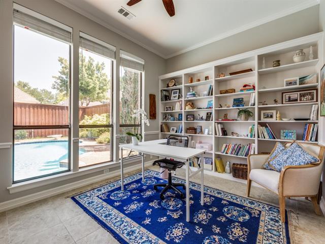 Stunning 3-story open-concept residence, designed to showcase stunning views of the resort-style pool from the main living areas. The first-floor primary suite offers a private retreat complete with an adjoining office or sitting room and a luxurious full bath. Upstairs, discover four spacious bedrooms, two well-appointed bathrooms, and a stylish game room featuring a built-in workstation, and a private balcony perfect for enjoying fresh breezes and serene outdoor moments. Ascend to the third level where a generous flex space awaits—ideal for a home theater, game room, or executive office. The outdoor living is equally impressive, with a covered patio overlooking the sparkling pool, and an additional side yard just off the breakfast nook, perfect for a summer kitchen or a private dog run. Nestled on a quiet cul-de-sac, this residence offers a circular driveway and a spacious 3-car garage. Located within a prestigious community with 24-hour security, this home defines luxury living at its finest. Just a few miles from Legacy West, Toyota headquarters, The Star, lots of shopping and dinning nearby. Exemplary top Plano schools