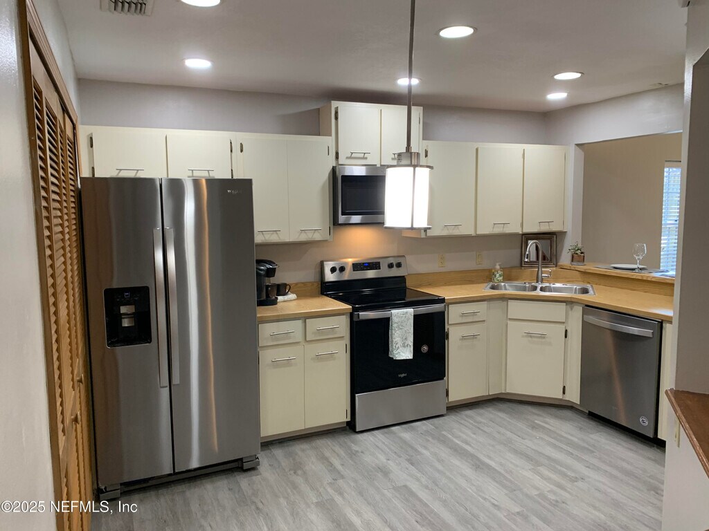 Renovated in 2020,this quiet neighborhood with end unit townhouse offers a split bedroom floorpan with 3 bedrooms,2 full baths,newer plank flooring on 1st floor and neutral paint throughout. Modern bathroom vanities and light fixtures in both bathrooms,kitchen and living area. Ceiling fans in the bedrooms and family room. Huge cathedral ceilings with skylights. Primary bedroom on 1st floor has a huge walk in shower and walk in closet with '2' separate sink areas. Second smaller bedroom also on 1st floor and extra large 3rd bedroom upstairs. Community pool amenities and lawn care included. Losco Regional Park is 2.8 miles East and 295 / I-95 is less than 2 miles. Shopping and restaurants a mile West. Credit over 675 recommended,good rental history,steady employment and income of 3x rent per month ($5625/ month) . Non-dangerous Pet(s) considered with $300 pet fee (non-refundable). Renters Insurance required. Realtor owned and managed. MLS# 2113333