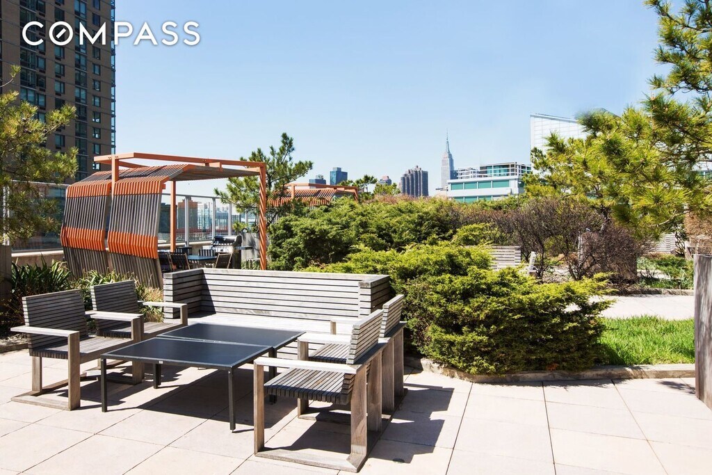 This sprawling sun-blasted one bedroom home boasts the most beautiful jaw-dropping city and water views directly from your own living room that features floor-to-ceiling windows. As you enter, to your right is a generous coat closet with built-in shelves and to your left is an elegant kitchen fully equipped with high-end appliances and top-of-the-line fixtures; SubZero refrigerator, Viking stove and microwave, Bosch dishwasher, Italian granite marble top, glass back-splash, triple lacquered spacious cabinets, automatic-closure deep drawers and dark granite floors. Stainless steel Grohe fixtures and double kitchen sink. The gracious living room boasts 10ft ceiling and comes with double-pane extra-large windows that overlooks the park, water and panoramic city skyline. The spacious bedroom boasts a super large closet with custom-made shelves. Wake up to the most incredible views from your own bed! The luxurious bathroom features a deep soaking bathtub, mosaic marble floors and stainless-steel fixtures. Other highlights for this unique home include an in-unit vented-out washer and dryer with a top shelve for some extra storage. Designed by the renowned architectural firm Handel Architects, the View condominium is the only luxurious water-front condo building in Long Island City with impeccable amenities that include 24-hour doorman/concierge services, fitness center, laundry room and full access to the Eastcoast Club right across the street where you will have free access to the following impressive amenities; Lap swimming pool, golf simulator, a massive gym with state-of-the-art brand new modern equipment, sauna and spa, yoga/aerobics room, cinema room, indoor private party/lounge, billiards room, gaming and music room, an enormous outdoor lounge/rooftop terrace with barbeque grills and cabanas. The indoor parking is right next to the club. This prestigious building holds the most coveted address in this evolving fabulous community. It's yards away from new Gantry State Park and the East River. Pet friendly. Long Island City is one of the most sought-after New York City neighborhoods, pulsating with excitement and great energy. Stroll, dine, shop, explore, experience the art that surrounds you, engage your senses and discover what awaits you in this wonderful community. It's close proximity to Manhattan is ideal for those who prefer a skip and a hop into the city, only 5 minutes to Grand Central Station via the 7 train.