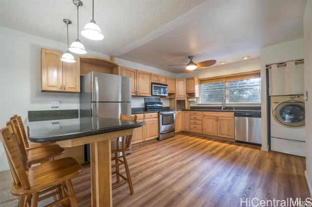 Nestled at the end of Kahuhipa & Haiku yet still within close proximity to Kaneohe Town, Likelike Highway, H-3 Freeway, Windward Mall, and KMBCH. Easy access for commute to Downtown Honolulu, Pearl Harbor, Hickam, Tripler, and West Oahu. This 1344 sq ft 3 bedroom 2.5 bath townhome sits in a quiet neighborhood along the Koolau mountain range. The recently renovated interior features split AC on main floor, window AC for each bedroom, and master bedroom walk-in closet. Modern open concept kitchen has granite countertops, new vinyl plank flooring, breakfast bar, and stainless appliances. Front-load washer/dryer are tucked off kitchen for convenience. Sit out on the private 384 sq ft back patio off the living room with private gate access to Haiku Rd. The private two-car garage has two tandem parking in the driveway. Multiple guest parking stalls throughout development and lots of street parking. RENTAL TERMS: Rent: $3,300 Security Deposit: $3,300 Application Fee: $45 (Only 1 adult applicant per household needs to apply) WE HIGHLY RECOMMEND YOU VIEW THE PROPERTY AND/OR SPEAK WITH A PROPERTY MANAGER BEFORE APPLYING. UTILITY * Water & Sewer Included
