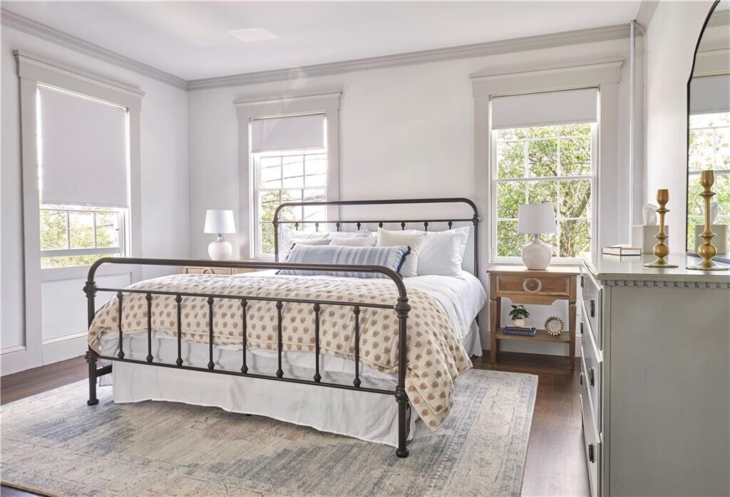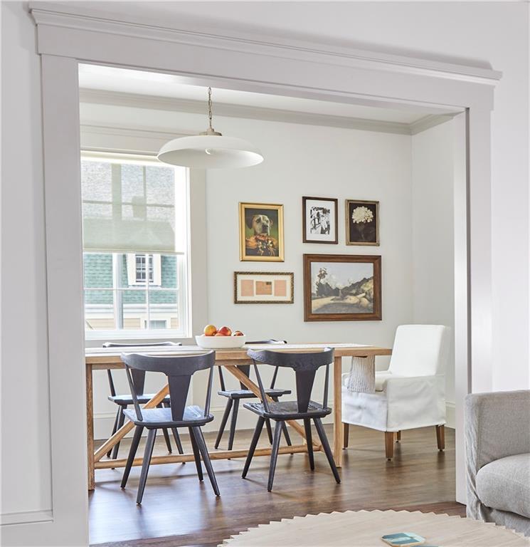 **Winter Rental** January 4th - April 30th,2026 - The Monro House - Recently renovated by a husband & wife/contractor & interior design team to include modern amenities while still retaining the vintage charm of the original home. Features include newly installed kitchen cabinets,appliances,lighting,high-speed wifi,smart TVs,designer furnishings,and a lot of comfy vibes. Enjoy all the new furnishings,cozy beds,a full kitchen,this space accommodates 6 people comfortably. There are 2 bedrooms,king & queen size beds,fully equipped kitchen,Dining rm,spacious living rm & full bath w/ washer and dryer. The 3rd floor features a vaulted loft with 2 twin beds,a powder room,and a dedicated workspace. A charming fully equipped kitchen with all new appliances including electric range,dishwasher,counter depth fridge,toaster and a Keurig coffee maker. This charming home is located in the heart of Downtown Bristol,once operated as the former post office & general store (now an antique store). You will enjoy all the convenience of downtown in a space that has been designed to pay homage to its original roots. Walk to the harbor,the bike path,& steps away from restaurants,shops,and spas! Close to Bristol's wedding venues and Roger Williams University. Just a hop skip & a jump to Newport and Providence. Private backyard & paved driveway with parking for 2 cars. Relax and enjoy the sunset views of the harbor from the primary bedroom,dining room and backyard.
