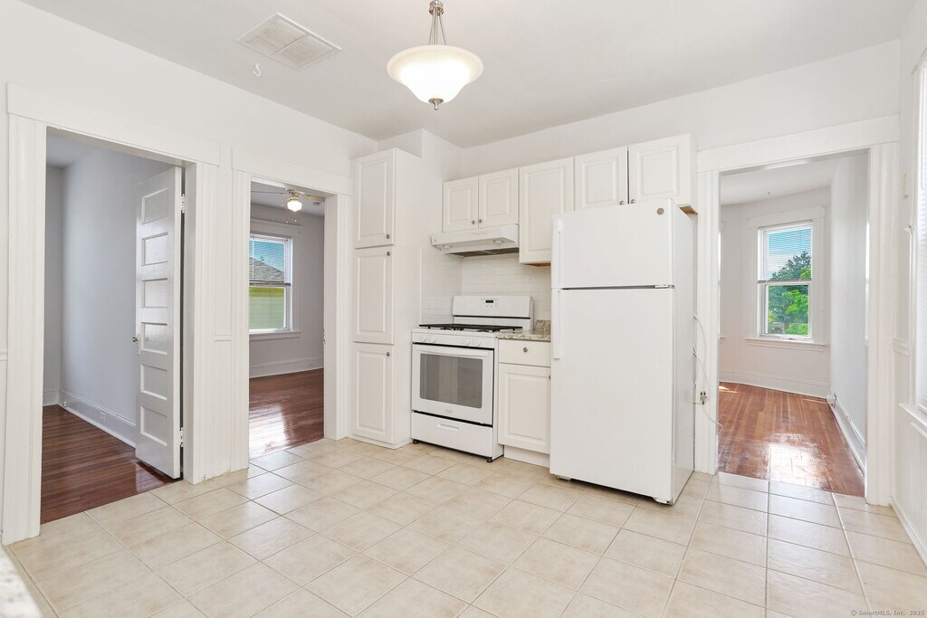 Call for Availability - Charming, spacious, and beautifully remoded! Light-filled open rooms with tall windows and gleaming hardwood floors create a warm and inviting feel. The spacious kitchen features a walk-in pantry, wainscoting, granite counters, and tile floor. The sunny living room with bay window flows nicely into two generously sized bedrooms with hardwood floors. Enjoy the newly remodeled bathroom, complete with a brand-new vanity and a stylish shower finished with classic subway tile. Additional highlights include Thermopane windows, all new blinds, and nothing to do but move right in! Relax on your own private covered porch or in the great yard-perfect for a BBQ. All this in a neighborhood setting, ideally located close to train, town , shopping, and great restaurants in both Black Rocj AND Fairfield. Just minutes to Fairfield's beautiful beaches! This is a 3rd floor unit and includes one off street parking spot. Requirements: Good credit, income verification, and references. MLS# 24120878