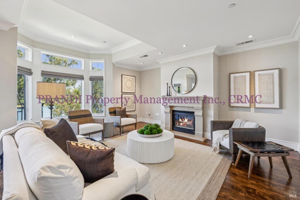 Emphasizing Luxury & Location (A more punchy, formal tone) Refined waterfront living awaits in this exclusive De Silva Island townhome. Offering spectacular, sweeping views of the San Francisco skyline and the water, this residence is a sanctuary of sophistication just minutes from the city's vibrant culture. Step inside to find generous, light-filled living spaces defined by 9-foot ceilings and the warmth of two elegant limestone gas fireplaces. The gourmet kitchen is a chef's delight, stunningly remodeled with rich Italian Calacatta marble counters, a professional-grade Viking gas range, and a built-in Thermador refrigerator. Counter seating makes it perfect for both casual dining and entertaining. The luxurious primary suite features a walk-in closet and a private balcony—a tranquil retreat to begin or end your day. A spacious two-car garage with custom storage and a workbench adds convenience. The private community elevates your lifestyle with resort-style amenities including a pool, clubhouse, and nature trail. Enjoy easy access to Sausalito, the Sonoma/Napa Wine Country, and all the Bay Area has to offer. Sorry, this owner prefers no pets. If you would like to make an appointment to view this property, please call or text Tara at .