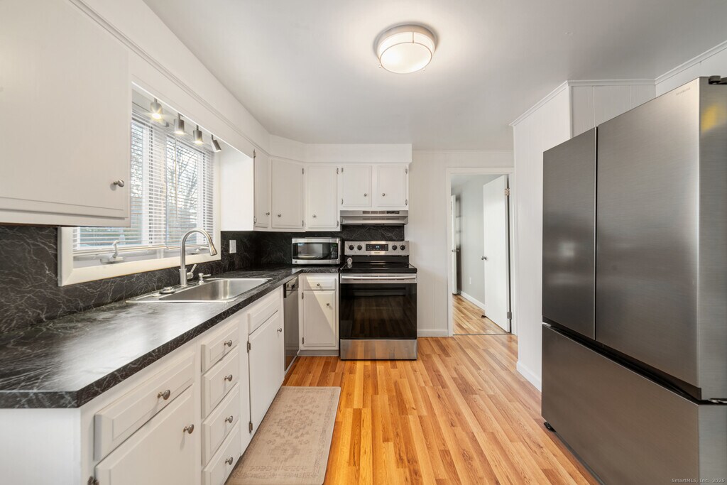Call for Availability - Newly renovated, sparkling clean 3-5 Bedroom, 1.5BA bungalow on a quiet street close to the Point Beach. Airy and sunny enclosed mudroom/drop zone/ front porch. Large living room with parquet floors, just redone. Spacious, sunny kitchen with brand new modern refrigerator and dishwasher. Also on 1st floor: dining room off kitchen, plus a large enclosed, heated sunroom, and a full bath (tub/shower) and bedroom. Upstairs are two large bedrooms, a half bath, and a hallway with closets. *****If heated sunroom and dining room are used as bedrooms, you can have 5 separate bedrooms here! See floorplan***** Full basement with laundry, Navien heating system for gas baseboard heat and on-demand, limitless hot water. 200 amp electric service, generator hook up, public water, public sewer. Completely fenced, small backyard with front border of perennials, driveway and shed. Quick drive to all Milford beaches, 95, Merritt, all shopping, Yale, Milford Hospital, et al. Pets might be ok with landlord's approval: any pet(s) needs to be fixed, current with shots and healthy, as proven with an email from vet. No fish tanks/turtles/no water tanks. All tenants over 18 must apply, all tenants over 18 must have 680+ credit score, and total household take home income must be 3x rent. No prior bankruptcies or evictions. Tenant responsible for snow removal and grounds/grass upkeep. Tenant pays their own gas and electric, but 1gb Fiber internet is included - gamers' delight! See interactive tour! MLS# 24141827