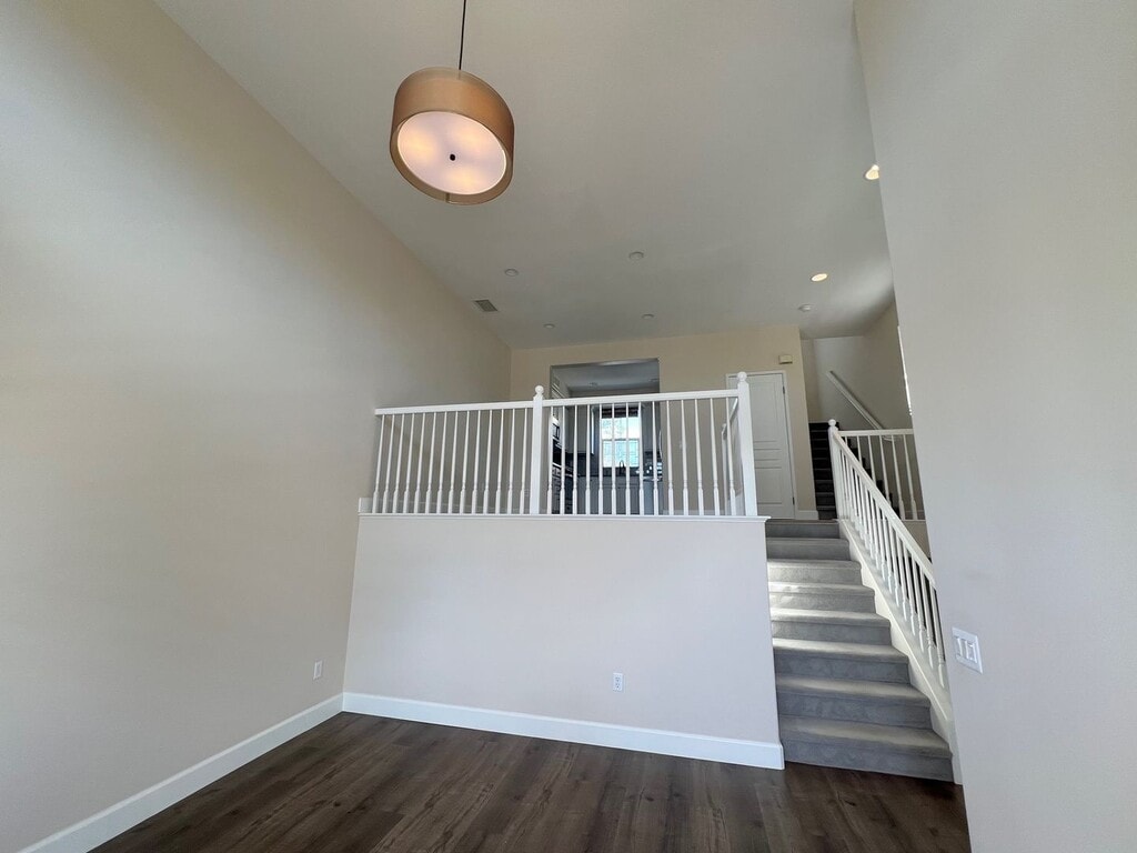 Spacious 1 Bedroom 1 1/2 Bathroom Townhome with many upgrades. The home features high ceilings, LVP flooring, recessed lighting, upgraded kitchen with stone countertops, includes stainless steel appliances, stackable washer/dryer included, living room with access to the balcony, spacious bedroom suite with en-suite bathroom and walk in closet, central ac & heating, 1-car attached garage with direct access. Located in a well-maintained community with access to pools, parks, and trails.