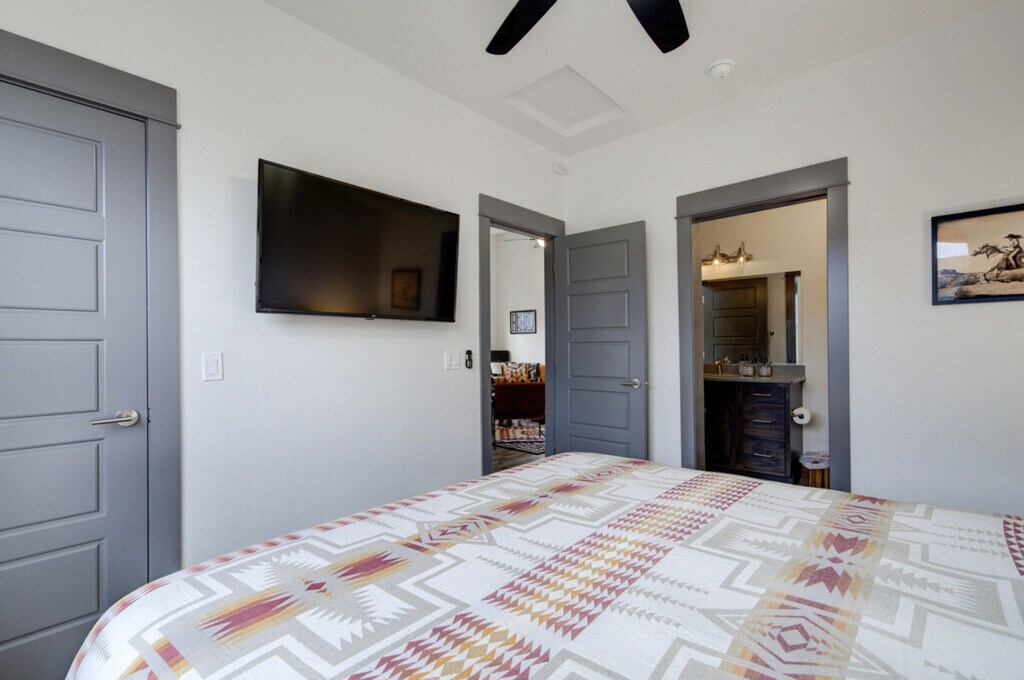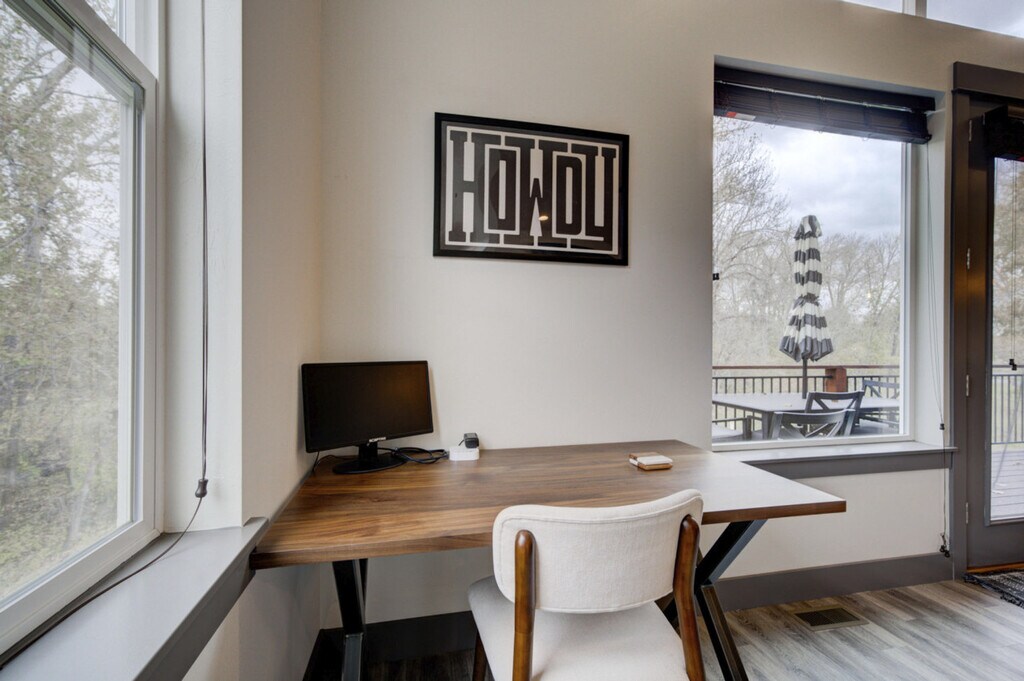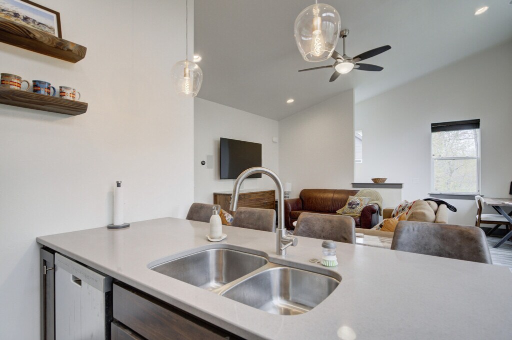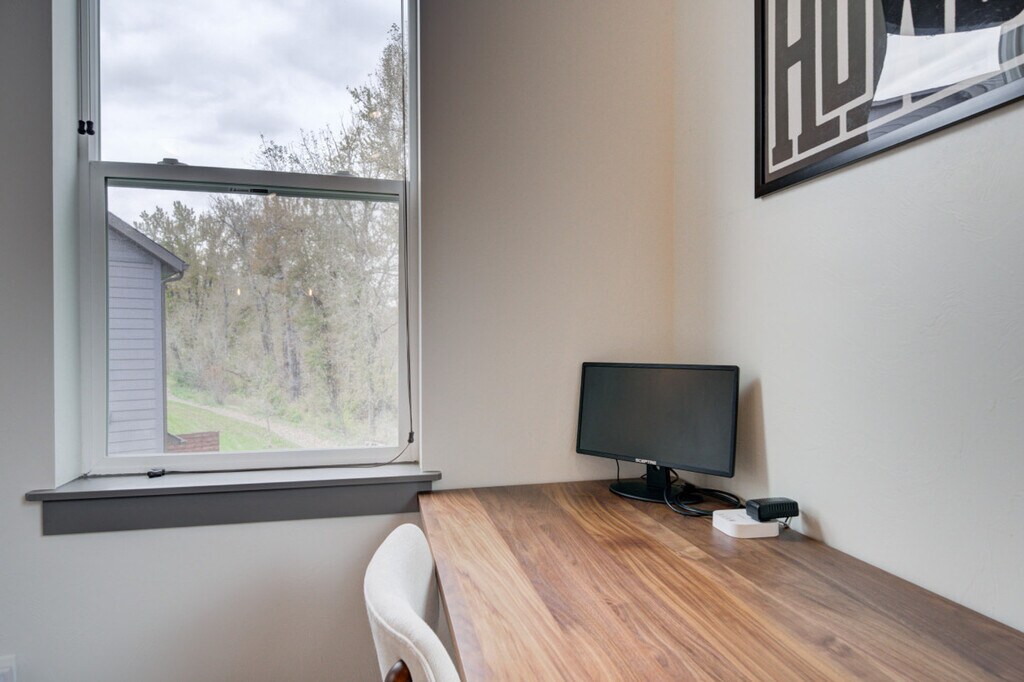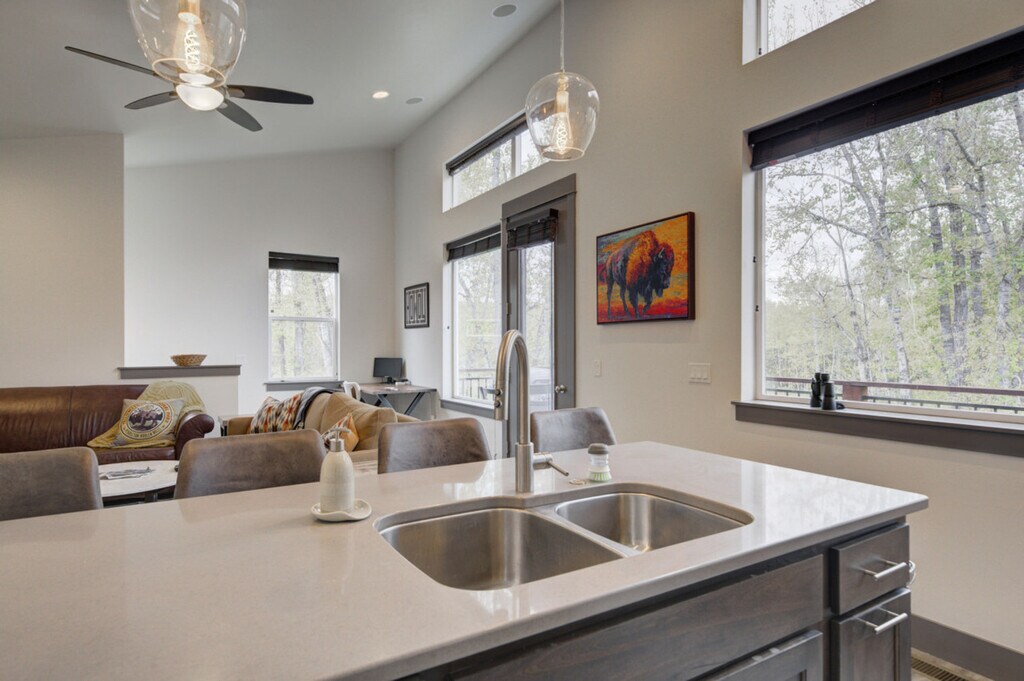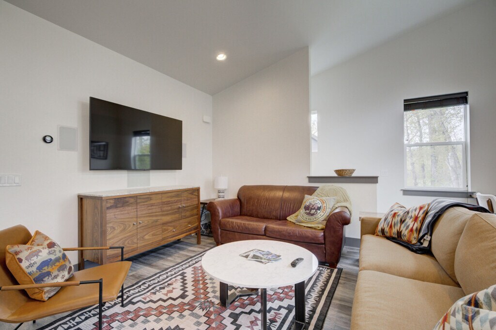 Nestled in the Railway Cottages development, this charming home is your ideal basecamp for Treasure State adventures. It backs onto a forested area with a trail to the Gallatin River, offering wildlife viewing opportunities with binoculars included and close proximity to Bozeman's attractions. Inside, enjoy ample space, natural light, and an open-concept design, fully stocked for your convenience and comfort during your Southwest Montana escape. The home features a patio with a BBQ, a garage, a full kitchen, and is located in a quiet area. Experience comfort in this spacious 2-bedroom, 1-bathroom home that comfortably sleeps 6 but can accommodate up to 8 guests. The condo spans 1064 square feet, excluding the two-car garage. The primary bedroom features a California king bed with a Nectar mattress and a 55” TV. The second bedroom offers queen-over-queen bunk beds and an adjustable-height standing desk. The living area includes a 65” LG TV, a cozy sofa that can double as sleeping space, a dedicated workspace, and Spectrum high-speed internet. The kitchen is fully equipped with stainless steel appliances, a crockpot, an ice maker, an eat-in kitchen, and filtered water in the fridge. Additional amenities include a full washer and dryer, a steamer, and an iron. There is parking in the driveway for 1 car and room for another car in the garage, although the owner’s car is also parked in the garage. Located in the Railway Cottages development, this home offers a quiet and serene environment with convenient access to leisurely walks. Within a quick 5-minute drive lies "Four Corners", a quirky hub boasting a range of businesses including bars, a Mexican restaurant, a cowboy cafe, a breakfast place, an espresso stand, a pizza place, a small supermarket, and a fly-fishing shop. Located about 15 minutes from Bozeman's lively Main Street, this home serves as an excellent starting point for exploring downtown Bozeman, Big Sky, and Yellowstone National Park. It's 8 miles to downtown Bozeman, 10 miles to the airport, 25 miles to Bridger Bowl, 35 miles to Livingston, 45 miles to Big Sky, and 85 miles to Yellowstone National Park. Bozeman is known as “the most livable place” for good reason, offering world-renowned fly fishing, stunning mountains for outdoor activities, and a vibrant arts and culture scene. The building is a duplex, accommodating other tenants on the opposite side, while this unit ensures complete privacy. Guests will have access to the entire property and can easily check-in via a keycode. Quiet hours are between 10 pm and 8 am to ensure a peaceful environment for all. No parties and no smoking are allowed on the premises. [SI]