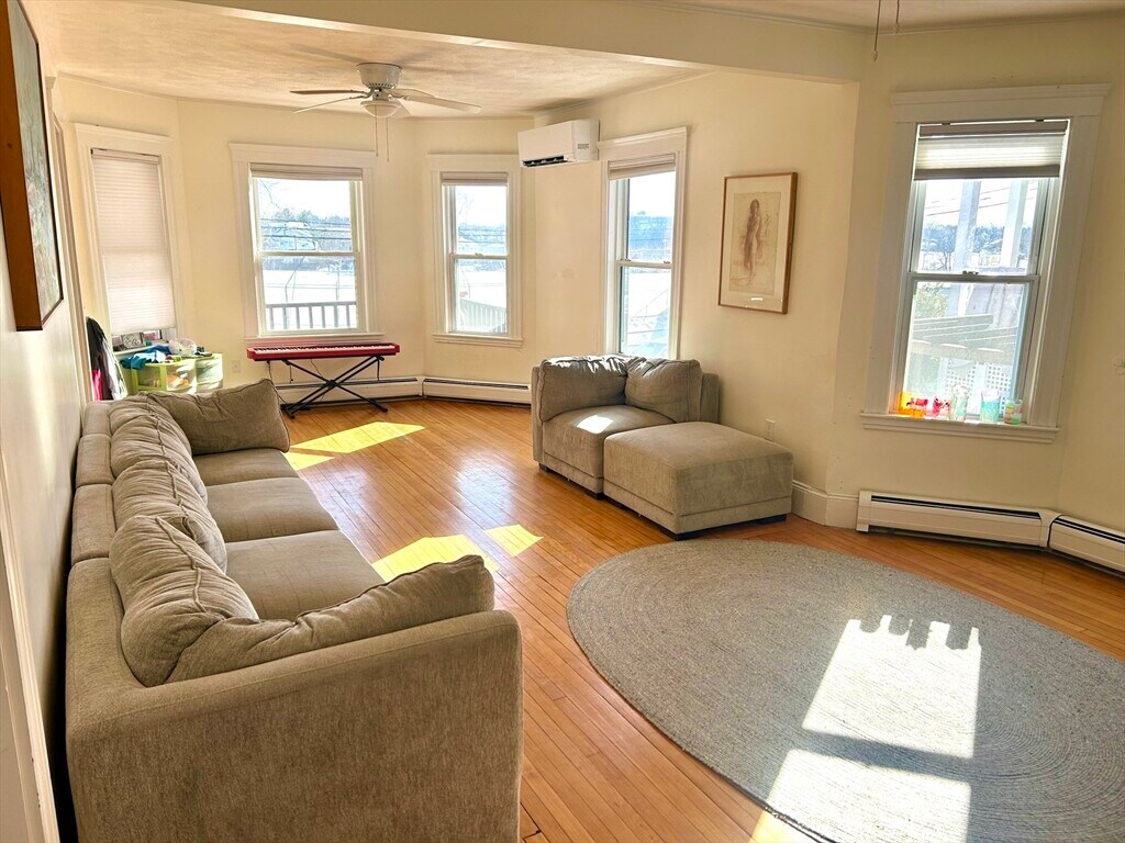 Beautiful sunny 3 bedroom apartment in an ideal location: a quiet dead-end road,across the street from Spy Pond Field,and a 2min walk to the Minuteman bike path and Central Arlington shops and cafes. Only a few miles from Tufts,Harvard,MIT.This three-level condo features hardwood floors and high ceilings and has been recently renovated including a new induction stove and new heat pumps for year-round temperature control. A back porch and two patios are right through the french doors from the kitchen. Gardener's delight with a fruiting peach tree,organic raised beds,and earth boxes. Fantastic spot for families: a quiet dead-end street with a lovely grass field and tennis/pickleball courts right out the front door,plus easy access to the bike path and the Arlington boys and girls club.Highlights:- Quiet,dead-end street- Across the street from Spy Pond Field- 2min walk from bike path and Arlington Center- Reserved parking spot- Outdoor grill- Blue Bike station MLS# 73481196