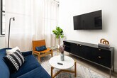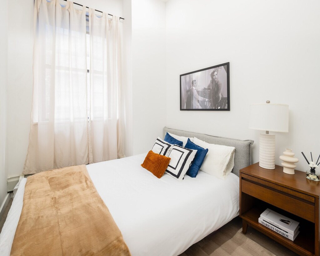 Experience luxury in the heart of New York City's Financial District with this beautifully designed apartment. Located in a full-service building, it offers a gym, rooftop, and concierge services. Enjoy the convenience of being near Wall Street, the World Trade Center area, and multiple train lines. Complimentary Wi-Fi and plush robes enhance your stay, while our professional team ensures an unforgettable experience. Indulge in the luxury of this beautifully decorated apartment featuring two cozy bedrooms, each with a comfortable queen-size bed and luxurious linens. The modern bathroom offers a relaxing bathtub and an abundance of fluffy towels. The fully equipped kitchen includes essentials such as a coffee maker, dishwasher, kettle, refrigerator, and oven. Enjoy meals at the spacious dining table for up to four guests. Unwind in the inviting living room with a Smart TV and plush sofa, perfect for relaxation after a long day. Enjoy complimentary access to the on-site gym and breathtaking views of the iconic Freedom Tower from the incredible rooftop. The apartment is pet-friendly, so feel free to bring your furry friend along. Additional fees or restrictions may apply. Nestled in New York City's historic Financial District, this apartment offers a unique blend of modern luxury and historic charm. Surrounded by iconic skyscrapers like the One World Trade Center and the New York Stock Exchange, the neighborhood provides world-class dining, shopping, and cultural attractions within walking distance. Whether for business or pleasure, the Financial District is the perfect base for your NYC adventure. Your well-being is our top priority, with enhanced cleaning protocols and a safe, sanitized environment. Enjoy a hassle-free arrival with our seamless self-check-in process, with detailed instructions provided prior to your arrival. Our dedicated guest support team is available 24/7 to assist with any inquiries, recommendations, or concerns. A picture ID (Driver license or Passport) is required at check-in. Stay connected with high-speed internet, perfect for remote work, streaming, or staying in touch with loved ones. [SI]