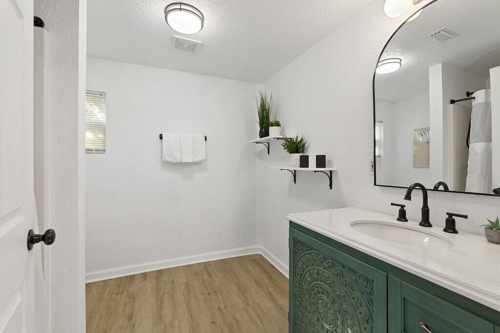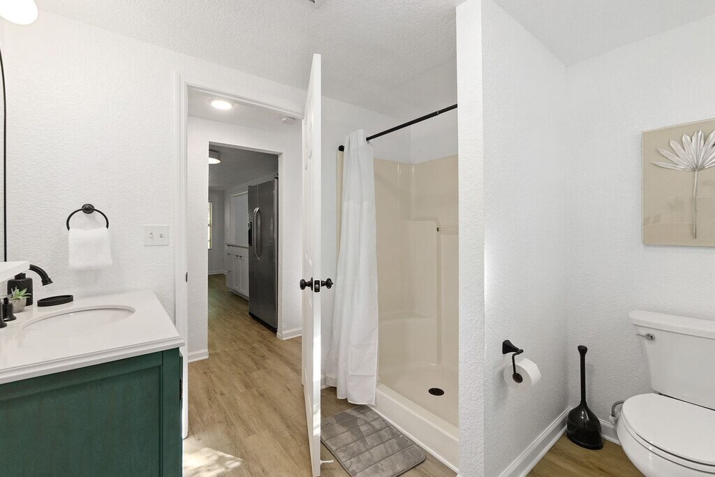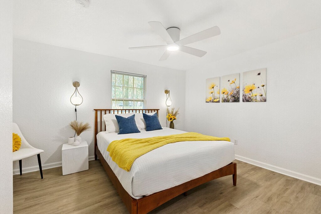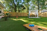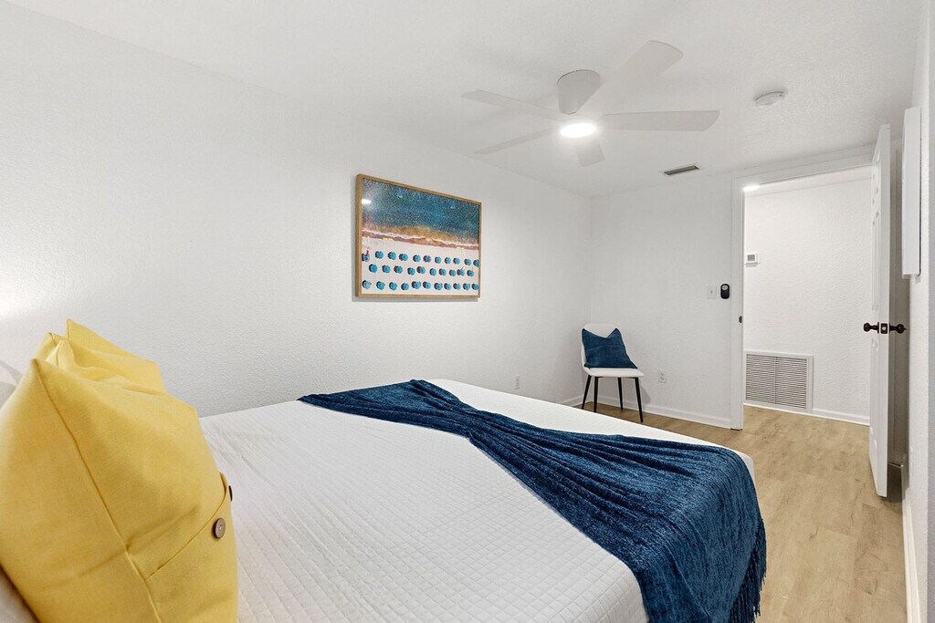 Welcome to this beautiful new 3-bedroom, 2-bathroom cottage, complete with an amazing outdoor space. Feel at home in this pet-friendly retreat, which comfortably sleeps up to 8 guests, including a queen-sized pull-out sofa in the living room. Enjoy the convenience of 2 off-street parking spaces and a fully equipped kitchen, all under the canopy of towering oaks. Step into a bright, open living room featuring a smart TV and cozy seating for everyone. Relax on the couch while enjoying your favorite Netflix shows or engage in a fun night with family using the various board games available. The well-stocked galley kitchen includes a toaster, crockpot, pots and pans set, and more, catering to all your cooking needs. The master suite boasts a king bed and a large flat-screen TV, with an attached private bathroom. Two guest bedrooms offer comfy queen memory foam beds, and a full bathroom with a shower/tub combination is conveniently located down the hall. The tranquil outdoor area is privately fenced and features a putting green, cornhole boards, and a stunning pergola with an outdoor dining set. A pet policy allows for 1 dog under 50 lbs, with a $100 nonrefundable pet fee. The dog must be up to date on vaccinations, fully potty trained, and kenneled. Additional charges apply if dog feces is not properly disposed of, at $50 per pile. Nestled in the historic and charming West King district, this peaceful cottage is just around the corner from popular local spots like Back 40 Urban Cafe and Bog Brewery. Downtown St. Augustine is only a short 3-5 minute drive away, while the white sandy beaches of Vilano Beach are just a 10-minute drive from the home. Explore the nation's most historic city with its flavorful dining, art, and culture, all just minutes away. Jump aboard the Trolley or hire a bike to soak up each neighborhood, museum, and monument. Quiet hours are enforced between 10pm and 8am per St. Johns County ordinance. The minimum age to book is 25, and the primary guest must be present for the duration of the stay. No parties or large group gatherings are allowed, and any guests visiting outside of the reservation must be approved prior to arrival. The home has an actively recording security camera at the front door. No smoking or vaping is allowed on the property, including the front porch, and evidence of smoking will result in an additional cleaning fee. Late check-outs and early check-ins require prior approval, with a fee of $50 per hour for overstaying. Illegal drugs, underage drinking, and flushing foreign objects down the toilet are strictly prohibited. Parents with young children should note that the home is not child-proofed. [SI]