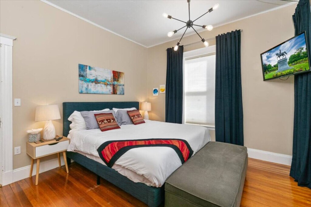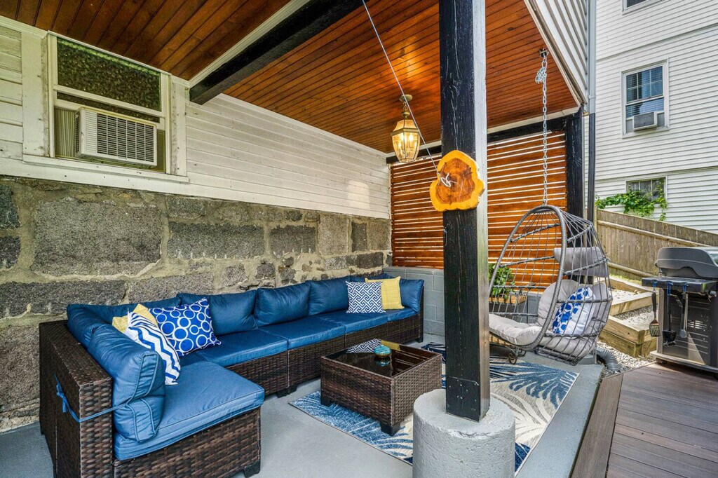 Enjoy a comfortable stay and feel at home in this clean and modern 4-bedroom, 2-bath home, occupying the entire first floor and walk-out basement of a two-unit building. It's less than a 10-minute walk to the beach and offers convenient access to Boston by car (15-25 minutes) or public transportation (30-45 minutes). This spacious 2000 sqft apartment was recently remodeled and retains plenty of character with many large windows. The open-concept design combines the kitchen, dining, and living room. Furnished and decorated in 2020, it includes hardwood floors, brand new and very comfortable memory foam mattresses, a large 60" smart TV with access to streaming services, a large comfortable sofa and coffee table, a dining table and chairs, luggage racks, a walk-in closet, an iron and ironing board, and private in-unit laundry. The kitchen has everything you need with plenty of counter and cabinet space, a sink, a stainless refrigerator, a gas range and a dishwasher, as well as a microwave, toaster, Keurig coffee maker, tea pot, knives and cutting board, pots and pans, glasses, flat-wear and utensils. Both bathrooms are clean and comfortable, including large rain-head showers, vanities, commodes, storage, and are stocked with plenty of towels, toiletries, and a hair drier. The main bathroom has a tub. Free parking is available in the driveway for 1-2 cars, and any additional cars can park for free on the street. Located in a very quiet and peaceful neighborhood near the beach, this apartment is within walking distance of many restaurants, convenience stores, grocery stores, bars, and other amenities. North Quincy is a nice, quiet, and very safe neighborhood, made up mainly of small to medium homes with the beach, businesses, and restaurants within walking distance. The beach is less than a 10-minute walk away, and there is a great corner market only two blocks away with a coffee shop, beer/wine/liquor, a Greek/Italian restaurant, and a small grocery store. There is a nearby park with a field, basketball courts, and a playground. You can easily access this home by car or public transportation and is a 15-minute, 3/4 mile walk from the North Quincy T Station on the Red Line, which gets you downtown in 25 minutes. It's close to highway 93, which provides quick access to Boston and the South Shore. You can drive to downtown Boston in 15 minutes, the airport in about 15 minutes, TD Garden in 15 minutes, Fenway Park in 25 minutes, Plymouth in 45 minutes, and Cape Cod in an hour (times may vary with traffic). Quiet time is from 10 pm to 8 am, and guests should be respectful of neighbors and other guests. Smoking inside is prohibited, and there is a $500 fee for violations, but smoking is permitted outside. Unauthorized late check-out after 11 am will incur a fee of $75 per hour. Guests who cause damage will be charged the cost of repairs. Guests who fail to follow house rules may be asked to leave without refund. Includes three desks for work. [SI]