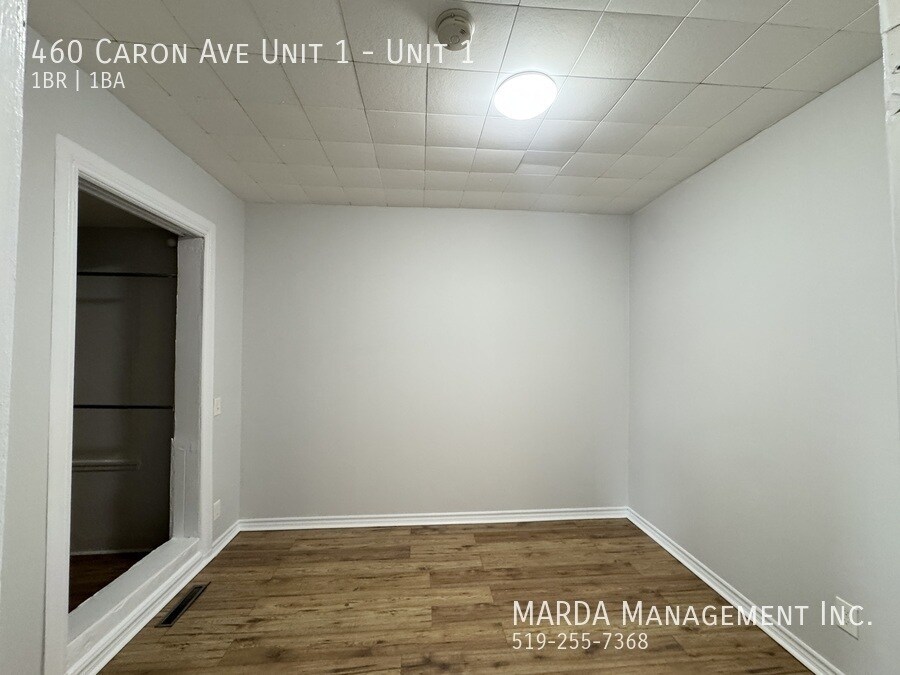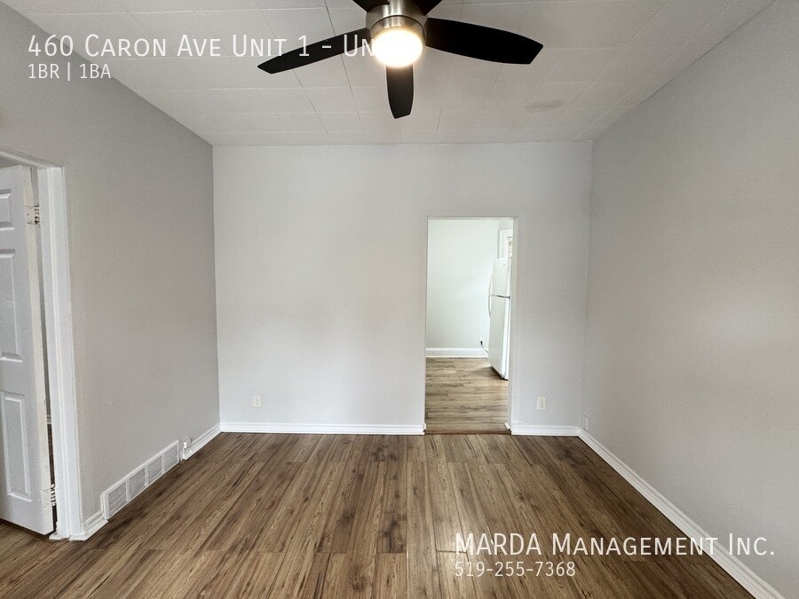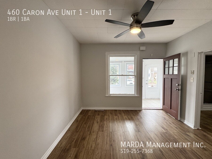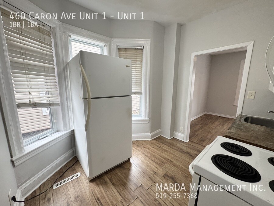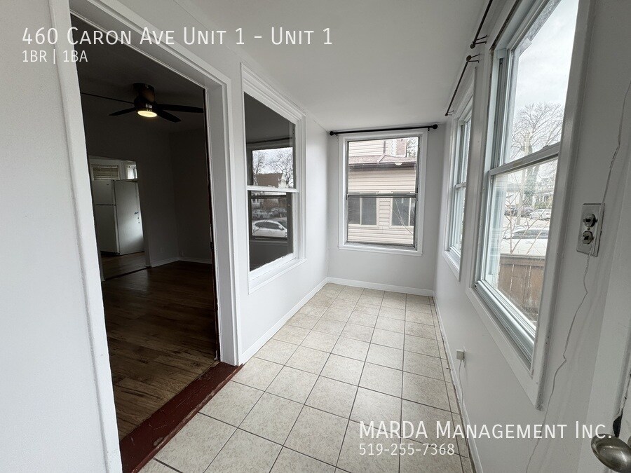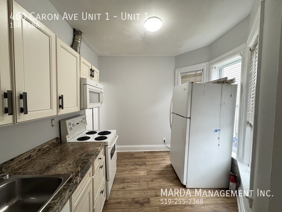 Welcome to 460 Caron Unit 1, where you'll discover this cozy 1 bedroom, 1 bathroom unit on the main floor of a triplex. Situated on a serene and quiet street, this apartment offers a peaceful living environment while still being close to essential amenities and transit routes. This unit boasts a generously sized bedroom with a convenient walk-in closet, providing ample space for your belongings. The kitchen has been thoughtfully remodelled, featuring newer appliances, fixtures, and cabinetry, creating a modern and functional cooking space. Enjoy a large enclosed sunporch that adds an inviting touch to the unit, perfect for relaxation or as an additional living space. The bathroom showcases beautiful ceramic tile, new cabinets, and a spacious stand-up shower, providing both style and comfort. The expansive and well-maintained shared backyard is an ideal space for outdoor activities and relaxation. Convenient onsite shared laundry facilities are available in the basement, making laundry day a breeze. Tenant utilities are included with $50 cap! First and last months rent and a credit check are required. Professionally managed by MARDA Management, offering 24/7 maintenance support and easy rent payment options. Call MARDA MANAGEMENT today at or email to schedule your viewing! Freshly Painted Front Porch Laminate Flooring No Smoking Allowed Pet Friendly Shared Back Yard