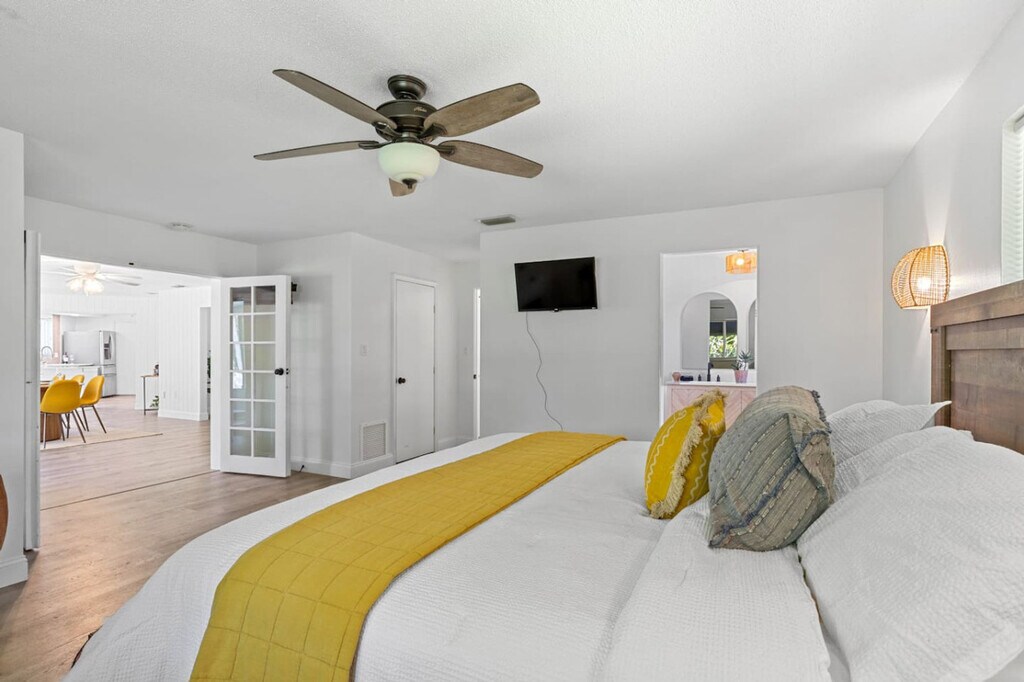 Feel at home in this private tropical oasis, perfect for large families or groups. This 1900-sf home sleeps 11 and is centrally located to all of the best attractions in Sarasota and Anna Maria Island. Every part of this home is customized for a 5-star experience and is well stocked for your convenience and enjoyment. It features a newly remodeled kitchen and 2 bathrooms, a screened-in lanai, and a massage chair. It also includes all the kid-friendly essentials. This property is situated on almost a half an acre on a golf course and is close to all of Florida's top-rated beaches, including Siesta Key, Lido Key and Anna Maria Island, the Ringling Museum, IMG, downtown Sarasota, and Sarasota-Bradenton Airport. Sara Bay Marina/Waterfront views are 3 minutes away, SRQ Airport is 7 minutes away, the Ringling Museum is 8 minutes away, IMG Academy is 15 minutes away, Downtown Sarasota is 15 minutes away, Lido Key Beach is 20 minutes away, Bradenton Beach is 20 minutes away, Siesta Key Beach is 30 minutes away, and Anna Maria Beach is 30 minutes away. Per community rules, no street parking, boat, or RV parking is allowed. Please be respectful of neighbors and quiet hours. [SI]