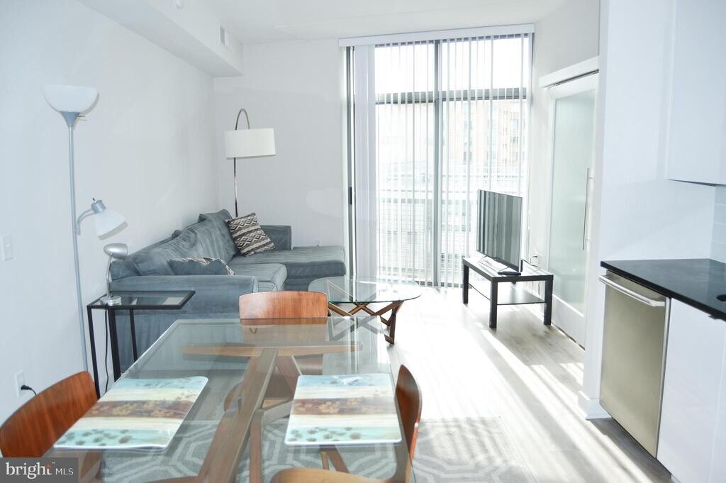 THE UNIT CAN BE RENTED FURNISHED OR UNFURNISHED. Sun-drenched one-bedroom condo located in Mount Vernon Triangle, downtown DC. Newer building with concierge and rooftop amenities. Almost 630 sqft of living space with an open floor plan. The unit comes fully equipped with modern appliances and amenities. In-unit washer/dryer. Access to the rooftop party room, pool table, and outdoor grill. Short distance to the Green, Yellow, Red Metro Line, and DC Circulator Bus. Across the street from 24-hour Safeway Supermarket. Furnished items include a 48-inch 4K HD TV, sofa, bed frame, table with four chairs, and various lamps. No pets.