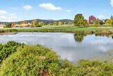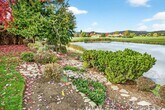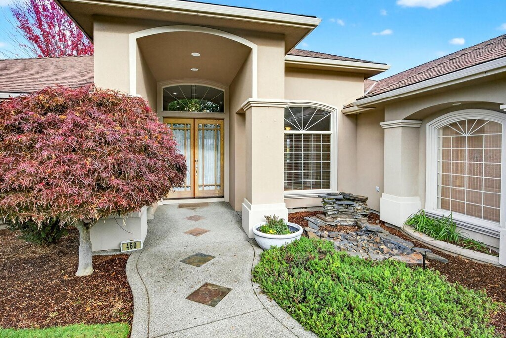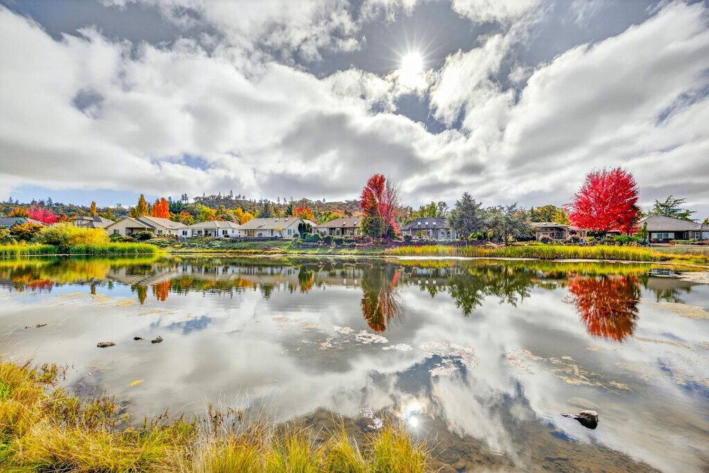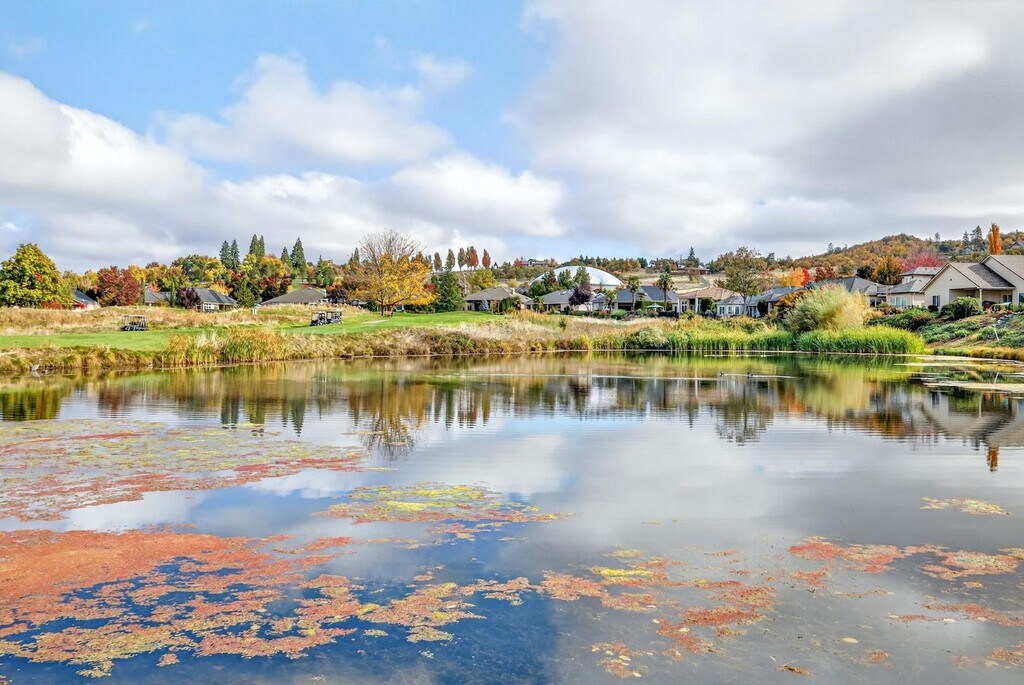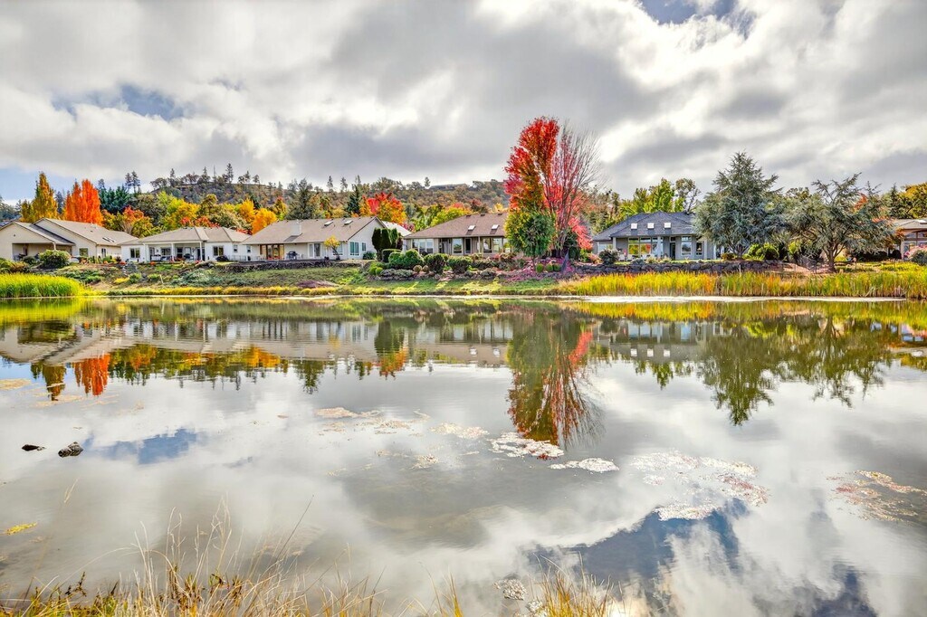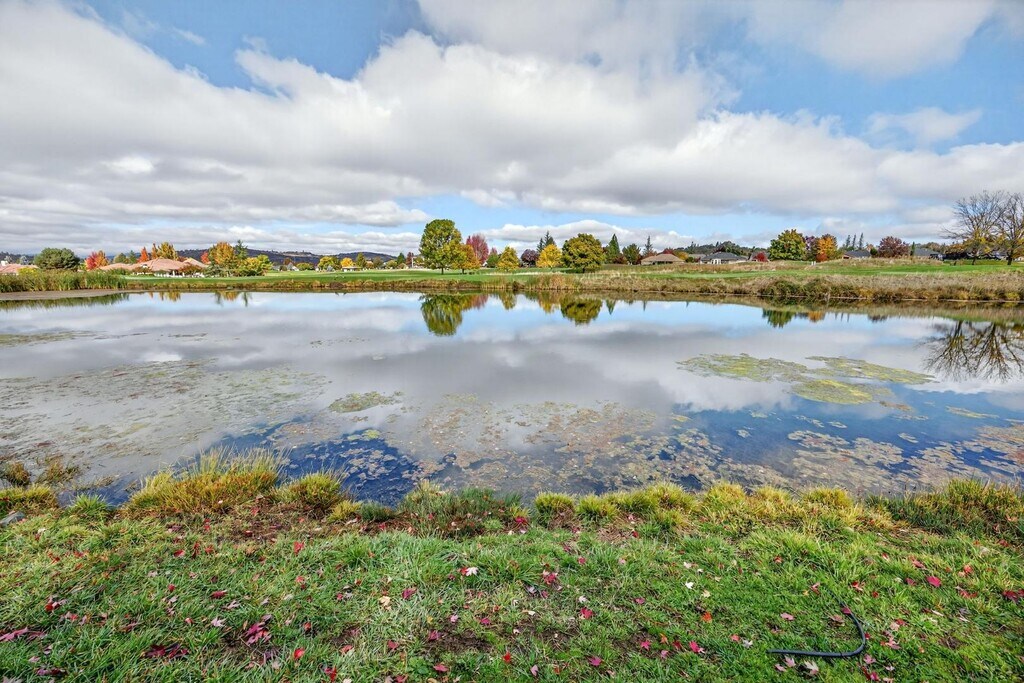 **Kitchen floor is being refinished, and new flooring is going in the master bathroom.** Experience luxury living at the pond’s edge on the 6th fairway of the Robert Trent Jones Jr. designed Eagle Point Golf Course. You’ll enjoy breathtaking views of the water, golf course, and Table Rocks from main living areas. The open floor plan boasts high ceilings and arched doorways that lead to an office w/ a built-in desk and the formal dining area, there is elegant crown molding throughout, built-in art niches, and a dramatic floor-to-ceiling river rock fireplace. The gourmet kitchen w/ island includes granite counters, abundant storage, and stainless appliances. The home has a split floor plan with guest bedrooms off the kitchen and the master suite off the living room. The master features a spacious ensuite with jetted tub, large walk-in closet, and stunning views. The backyard offers a covered patio plumbed for gas with skylights, pond frontage, and beautiful grounds. Landscaping in...