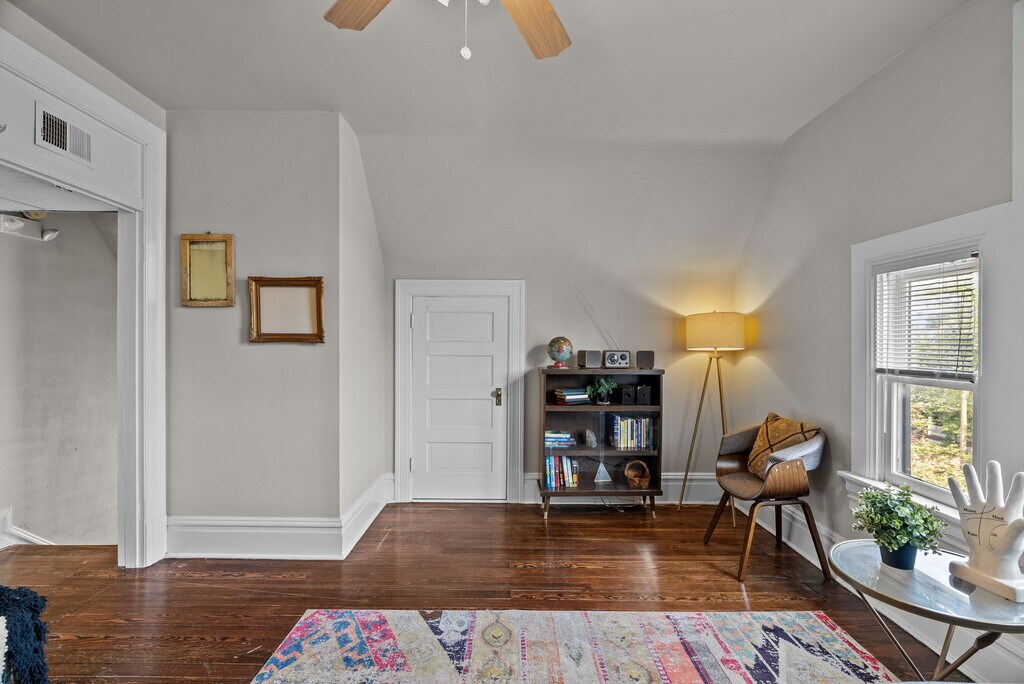 FULLY FURNISHED MID TERM RENTAL (Stays of 31+ days only) Perched above of one of the most beautiful streets in the Central West End (CWE), this furnished apartment is in the heart of the CWE. This space occupies the entire third floor, providing a wonderful mix of historic architectural details with modern amenities. Enjoy ample closet space in each room, natural light, and a roof top deck to unwind. Private floor of boutique apartment home. Free street parking available