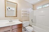 Sunlight fills the living area, where tiled floors and a ceiling fan create a comfortable space that’s easy to enjoy every day. The layout naturally extends toward the dining area, where a glass-paned back door adds light and provides access outside. From there, the kitchen features generous cabinetry, a stainless steel refrigerator, and plenty of counter space for preparing meals, with a window over the sink that keeps the room bright. Three bedrooms give everyone space to relax, with the main bedroom offering a ceiling fan, closet, and ensuite bath for added convenience. The second full bath is finished with shelving and a combination shower and tub, making it simple to accommodate family or guests. In-home laundry, central heat, and air conditioning all add to the practical comforts of this home. Life here means you’re close to everything that makes Austin exciting! HEB and Mueller Market District are just minutes away, offering groceries, dining, and weekend farmers’ markets. Downtown is a quick drive, giving you access to live music, cultural events, and an endless variety of restaurants. Travel is just as easy, with Austin-Bergstrom International Airport nearby. Up to two cats are welcome to make this home their own alongside you. *This single-family home comes with an in-law unit that will be leased out separately. Message for more details.