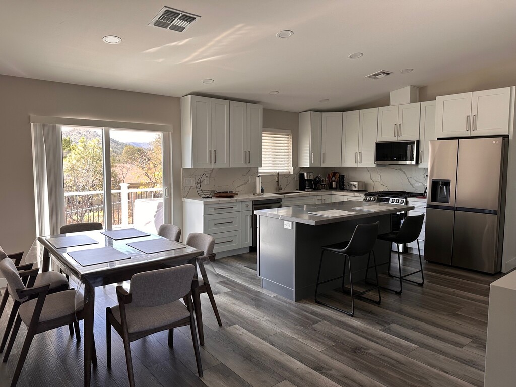 Welcome to the Rockin' Robin! Your next vacation destination! Come enjoy the lavish feel of this beautiful 3-bed 2-bath, newly built home! Enjoy the spectacular view out on the back patio while grillin' some burgers or sit out on the peaceful front porch while drinking your morning cup of joe. Two car garage! Home is fully equipped with pots, pans, basic cooking ware, towels, linens and more! Top floor is all yours! There is a locked door in the laundry room that leads to the owner's private space. OWNERS SOMETIMES RESIDE ON THE BOTTOM FLOOR. THIS ROOM WILL BE LOCKED AND YOU WILL BE MADE AWARE BEFORE THEY ARRIVE. THEY HAVE THEIR OWN PRIVATE ENTRANCE AND PARKING. You must complete a contract through our company and provide a copy of your ID before we can complete your reservation and give you access to the home. We can't wait to have you! Book now! BEAR CREEK REAL ESTATE AND PROPERTY MANAGEMENT LC662131000 Prices and availability are subject to change. $250/NIGHT $1100-$1400/WEEK $3000/MONTH Welcome to the Rockin' Robin! Your next vacation destination! Come enjoy the lavish feel of this beautiful 3-bed 2-bath, newly built home! Enjoy the spectacular view out on the back patio while grillin' some burgers or sit out on the peaceful front porch while drinking your morning cup of joe. Two car garage! Home is fully equipped with pots, pans, basic cooking ware, towels, linens and more! Top floor is all yours! There is a locked door in the laundry room that leads to the owner's private space. OWNERS SOMETIMES RESIDE ON THE BOTTOM FLOOR. THIS ROOM WILL BE LOCKED AND YOU WILL BE MADE AWARE BEFORE THEY ARRIVE. THEY HAVE THEIR OWN PRIVATE ENTRANCE AND PARKING. We can't wait to have you! Book now! BEAR CREEK REAL ESTATE AND PROPERTY MANAGEMENT LC662131000