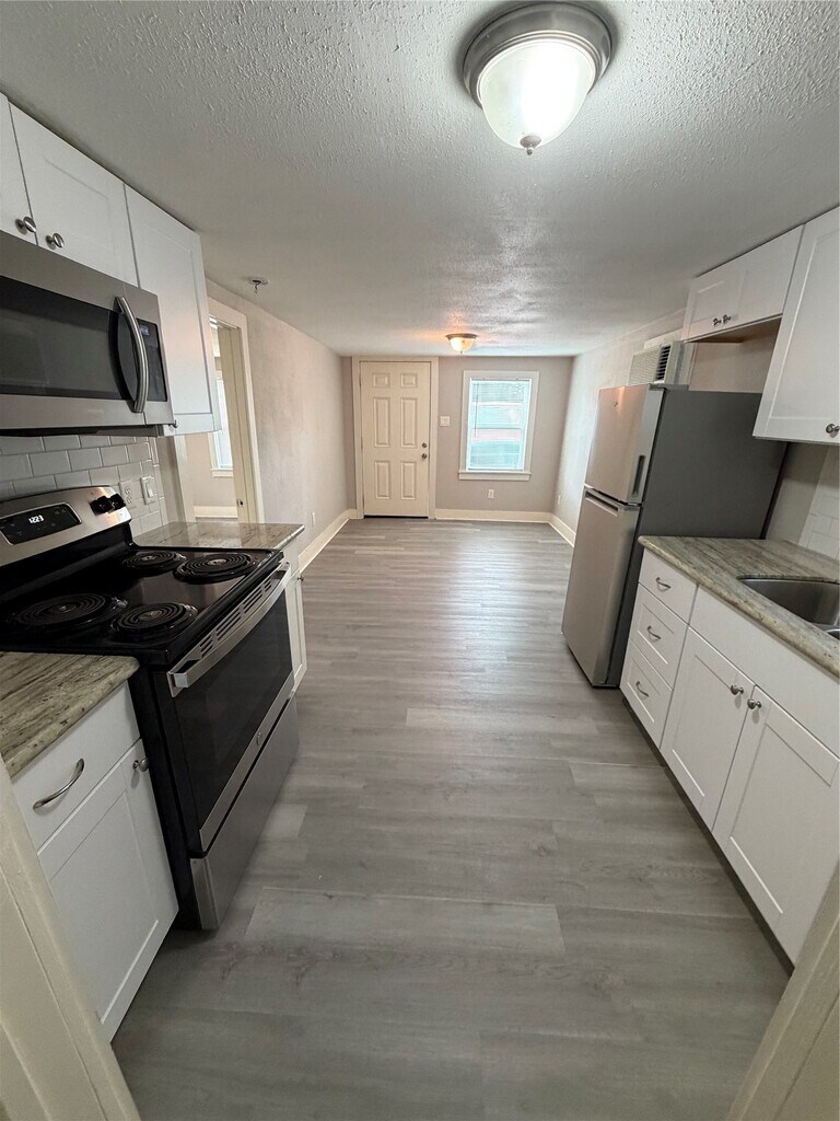 Charming studio garage apartment in Near Northside area with stainless appliances,stacked w/d full-sized. New flooring throughout apartment installed. Quiet neighborhood near grocery stores and restaurants. Close to Heights and Lindale Park. Easy freeway access,10 minutes to Downtown U of H campus. Conveniently located near the Metro Red Line Rail. This studio apartment is perfect for a professional or student who wants to live close to work or school. Provide a copy of TDL,3 months check stubs,no evictions no broken leases,no criminal record,good rental history is a plus. Verify room dimensions. Tenant pays electric. MLS# 72968722