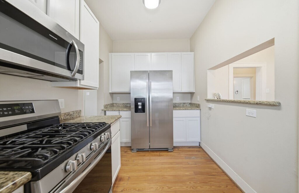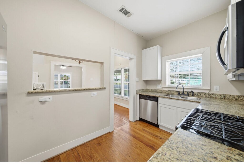 Charming 1950s Bungalow with Updated Kitchen & Spacious Layout. Welcome to this charming 1950s bungalow featuring a beautiful front porch and abundant natural light throughout. Original hardwood floors flow through most of the home,adding warmth and character. The main level includes two bedrooms and one full bath,while the upstairs offers a third room with an additional full bath—an ideal layout for roommates or guests. The updated kitchen features granite countertops and stainless-steel appliances. You’ll enjoy ample storage with generous closet space,a utility room,and additional storage under the stairs. Owner covers security system service and yard maintenance. Located in a highly convenient area,this home offers close proximity to UH Medical School,the University of Houston,Texas Southern University,the Texas Medical Center,Downtown Houston,and the vibrant EaDo district,providing quick access to work,school,entertainment,and dining. MLS# 32953875