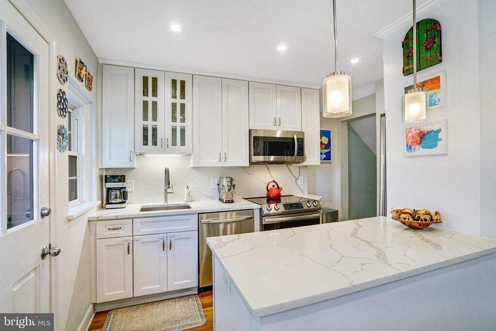Welcome Home! This beautifully updated 2-bedroom, 2-bath townhouse shines from top to bottom! Step inside to find gleaming hardwood floors, sun-filled rooms, and a fully renovated kitchen and baths. The kitchen features stainless steel appliances, quartz countertops, designer cabinetry, and a peninsula perfect for casual dining. Both bathrooms offer a spa-like feel with modern finishes. The fully finished lower level adds fantastic flexibility with a second family room with built-ins for extra storage, a separate bonus room, and a convenient laundry/full bath combo. Step outside to your private oasis — a fenced stone patio surrounded by lush landscaping and raised garden beds, ideal for relaxing or entertaining. Enjoy access to community amenities including an outdoor pool, tennis courts, picnic areas, and open green space. Just minutes to Old Town Alexandria, Shirlington, and the shops and restaurants at Bradlee Shopping Center, with easy access to Metro bus stops, the Pentagon, and King Street Station. An easy commute in any direction! Condo fee includes all utilities except electric, cable/internet.
