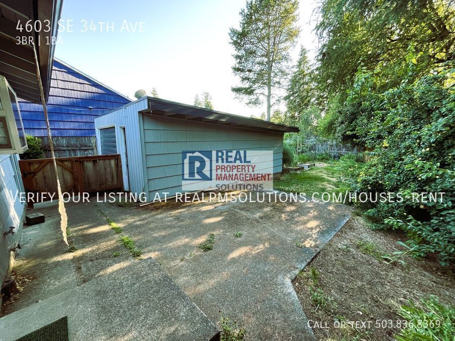 The Open Application Period begins November 3, 2025 at 4pm. At the start of the Open Application Period, the date and time that each completed application is received is recorded and applications are processed in the order received. If applications are received before the Open Application Period, they are subject to an 8-hour penalty and processed in the order received (see PCC 30.01.086.C.1). Beautifully maintained mid-century one level 3 bedroom home in coveted Reed neighborhood! Relax and enjoy the quiet street and curb appeal from lovely east-facing covered porch. Ample space to entertain with open floor plan & shelf space. Spacious fenced yard with patio + mature trees & garden! Original hardwoods throughout and updated kitchen. New water heater, newer windows & roof. Heat pump (provides A/C as well as heat). Ample driveway parking and storage garage ideal for workshop. Blocks from shops, dining, groceries & parks! This charmer is a must see! Reed is located in a very beautiful area of SE Portland and is named after Reed College. The neighborhood is lined with old-growth trees, and across the street in the Southeast corner you can see the Eastmoreland Golf Course and the Rhododendron Garden, both of which are a part of Eastmoreland. Nearby Trader Joe's on Cesar E. Chavez Blvd and Kenilwith Park, easy access to 99E and Powell Blvd. Nearby school include Grout Elementary School, Hosford Middle School & Cleveland High School. 71/100 Very walkable Walk Score® and 94/100 Biker's paradise Bike Score®. SCREENING CRITERIA: Screening criteria may be found at