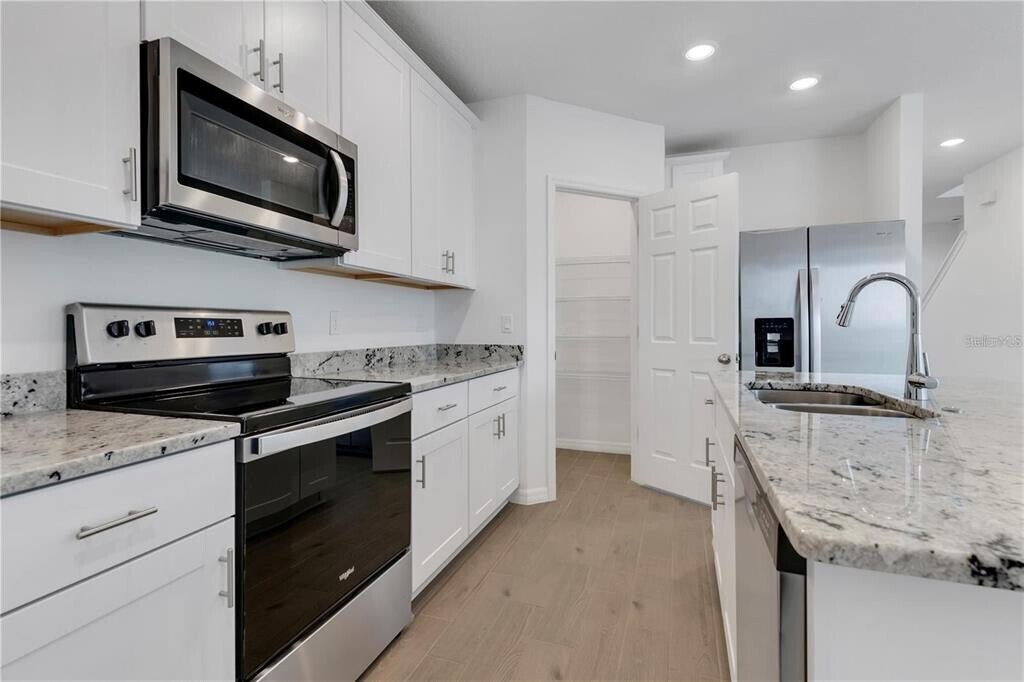 Move-In Ready Home in The Meadow at Crossprairie! Welcome to this beautiful Marigold floor plan offering 4 bedrooms,2.5 bathrooms,and a versatile flex space perfect for a home office,playroom,or additional living area. With over 2,300 square feet of well-designed living space,this home provides comfort,functionality,and style. The open-concept layout features a modern kitchen with white cabinetry,granite countertops,and stainless steel appliances,flowing seamlessly into the spacious living and dining areas — ideal for both everyday living and entertaining. Upstairs,you’ll find generously sized bedrooms offering privacy and comfort. Enjoy relaxing evenings on the covered lanai and the benefits of an energy-efficient home designed for savings and everyday comfort. Located in The Meadow at Crossprairie in St. Cloud,this community offers convenient access to the Turnpike,shopping,dining,and excellent MLS# O6386218