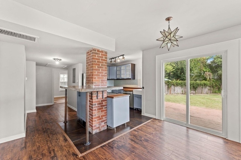 Discover this stylish and welcoming 2-bedroom, 1-bath home nestled in the quiet and established community of Timuquana Manor. Offering 1,065 square feet of thoughtfully designed living space, this home combines modern industrial chic with comfortable, livable charm. Inside, clean lines and contemporary finishes complement an open and flexible layout that is perfect for both everyday living and entertaining. The kitchen and living areas flow seamlessly, creating a spacious and inviting atmosphere with plenty of room to personalize. The updated bathroom features a sleek quartz countertop and modern fixtures, adding a polished and upscale touch. Step outside to your own private backyard retreat. This oversized outdoor space offers endless possibilities, whether you envision a garden, a relaxing lounge area, or a place to gather with friends and family. Located in a desirable area, this home is zoned for a highly rated elementary school that is ranked number two in all of Duval County and in the top three percent statewide.