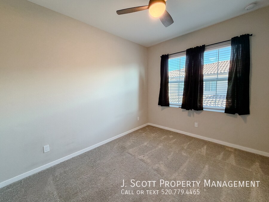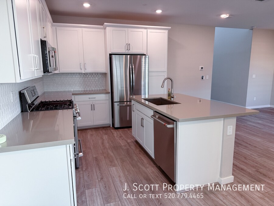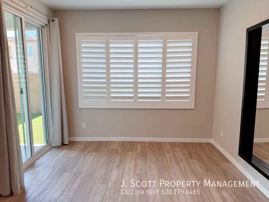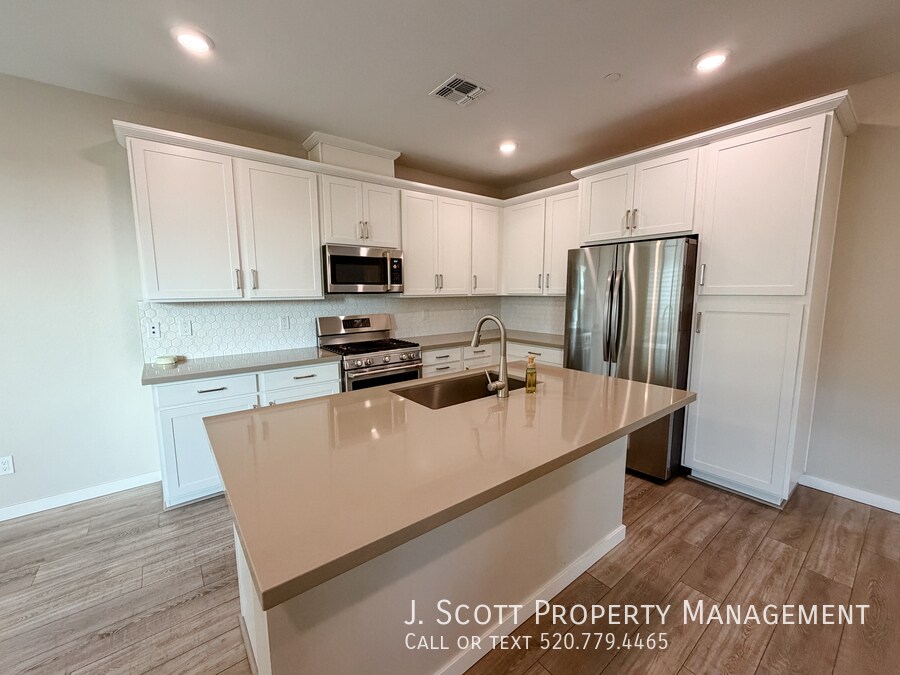 This nicely-equipped 1,684 sq. ft. home is located in the highly desirable Layton Lakes community in Gilbert, offering a blend of modern finishes, functional design, and resort-style amenities. The home features 3 bedrooms, 2.5 bathrooms, and a 2-car garage, with thoughtful upgrades throughout that enhance both comfort and style. Inside, tile plank flooring runs through the main living areas, complemented by plantation-style shutters and ceiling fans that add both character and efficiency. The open-concept kitchen is designed for everyday living and entertaining, featuring upgraded white cabinetry, quartz countertops, a tile backsplash, stainless steel appliances, a gas range, a large kitchen island, and a breakfast bar. An eat-in kitchen area provides additional dining space with a natural flow into the living area. Upstairs, the bedrooms are well-proportioned, and the laundry room is conveniently located on the second level with a washer and dryer included. The layout offers a practical separation between living and sleeping spaces, making the home feel both functional and private. The backyard is fully finished and low maintenance, featuring a covered patio and turf, creating a great outdoor space for relaxing or entertaining without the upkeep. Layton Lakes offers an impressive array of community amenities, including a community pool and spa, scenic lakes, walking and hiking trails, tennis courts, play areas, and designated dog areas. With beautifully maintained common spaces and a strong sense of community, this location provides an exceptional lifestyle alongside the convenience of Gilbert’s shopping, dining, and commuter access. This home combines modern interior upgrades with a highly amenitized community, making it a standout option in one of Gilbert’s most sought-after neighborhoods. ANIMALS No Animals UTILITIES Electric: SRP Gas: Included Water/Sewer/Trash: Included OTHER Lawn and Landscaping: Tenant Trash: Can only be place out between 6:00 PM - 8:00PM and must be brought back in by 8:00AM Daily - HOA is quick to fine for this.