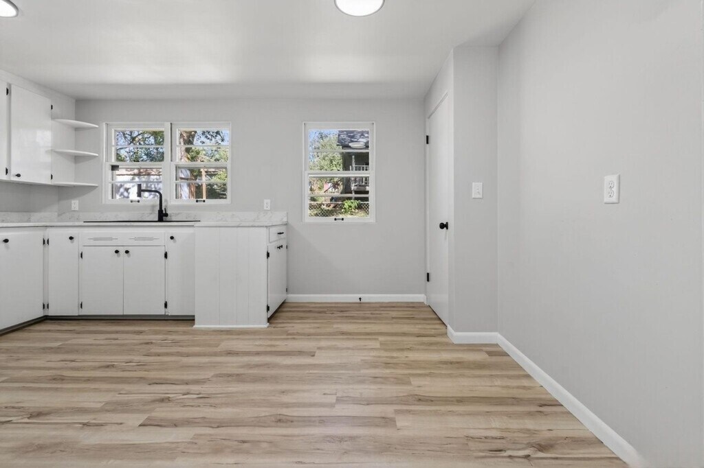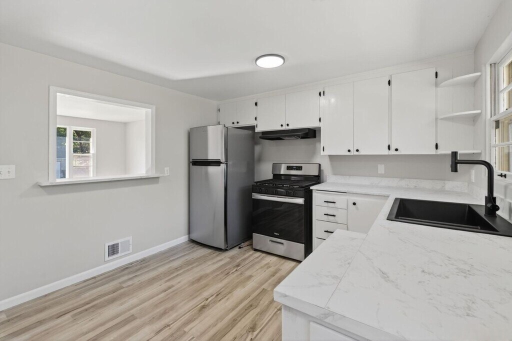 Beautifully remodeled 2 bed, 1 bath ranch on a quiet corner lot! This one-story home features refinished original hardwood floors, new LVP flooring, a fully updated kitchen and bathroom, new water heater, and a newer roof. The built-in 1-stall garage adds convenience, while the fenced yard offers privacy and space to enjoy. Located in a peaceful neighborhood.