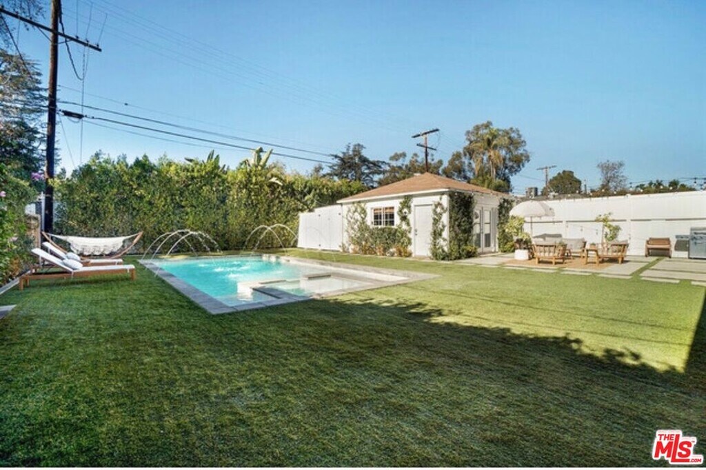 Beautifully renovated single family pool home located in a magical pocket in Toluca Lake is available for rent, long or short term. This gorgeous 3 bed/3 bath gated home is tucked away behind lush hedges and has a large dreamy backyard with a little converted garage/bonus space out back! Contemporary finishes enhance the bright, airy feel of the home, with plenty of natural light illuminating every corner. The inviting living room features a cozy fireplace and a quaint reading nook. The kitchen is well equipped with top-of-the-line appliances, white quartz countertops, and an eat-in breakfast nook. Steps lead down to the spacious family room, which offers a picturesque view of the sprawling backyard. A pool and spa await, alongside an outdoor dining and lounging area complete with a barbecue, all illuminated by string lights. Generous primary suite includes a luxurious ensuite bathroom featuring a soaking tub. Conveniently located in the heart of Toluca Lake, this residence offers easy access to nearby shops and amenities. MLS# 26650295
