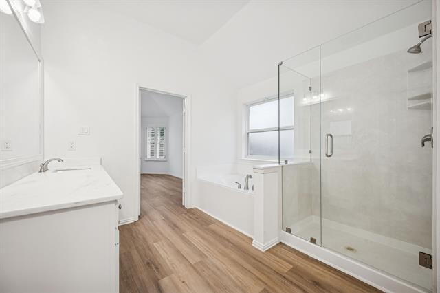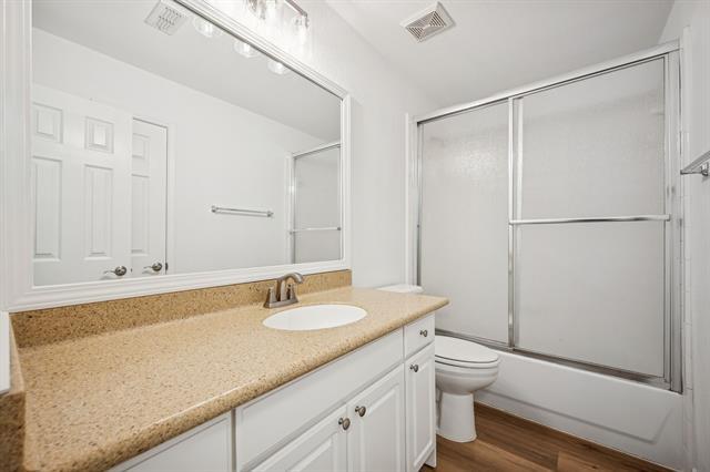 Charming 1 story home with recent updates and ready for move-in. New flooring, complete new paint on walls and ceiling, new light fixtures, door hardware, granite, and seamless glass shower. Fully landscaped yard with privacy fence and covered back porch perfect for outdoor enjoyment. Don't miss this opportunity. City park just down the street with easy access to hwy 121 with shopping and restaurants nearby. Eldorado Heights community.