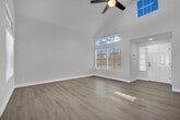 This property features a 3 CAR garage, a family room, and an extra room that can serve as a gaming room or a craft room. The home boasts new vinyl plank flooring throughout and ceiling fans in every room for added comfort. Step outside to enjoy a spacious backyard with low-maintenance artificial turf, perfect for relaxation or outdoor activities.