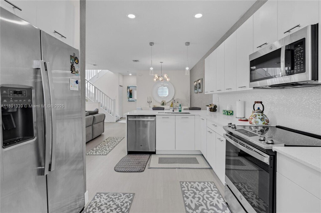 Welcome to this spacious 2-story townhouse with 1,894 sq ft of living space, meticulously maintained and available for rent in the heart of Doral at URBANA. As you enter, you'll find a 2-car garage with tile floors, a beautifully designed kitchen featuring a breakfast island, a dining area, a guest bathroom, and a bright, open living room. Upstairs, you'll enjoy vinyl floors throughout. The second floor hosts a convenient laundry room, and three generously sized bedrooms, including an oversized master suite with a private balcony and a spacious walk-in closet. This home is available partially furnished. Enjoy resort-style amenities and a prime location close to shopping, dining, and entertainment. Don't miss out on this exceptional opportunity! *Available December 1st*