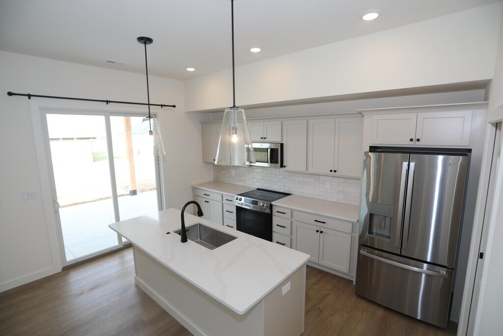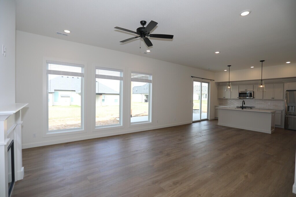 Built in 2025,this brand new single family home in The Brooks was constructed with the tenant in mind! The inside includes upgraded features such as stainless steel appliances,a custom drop zone for your bags,arched doorways and a fireplace while the outside includes an oversized,covered back patio with a fire pit and a gas hook up for easy grilling. The garage also comes with 2 electric vehicle outlets to house any type of vehicle!