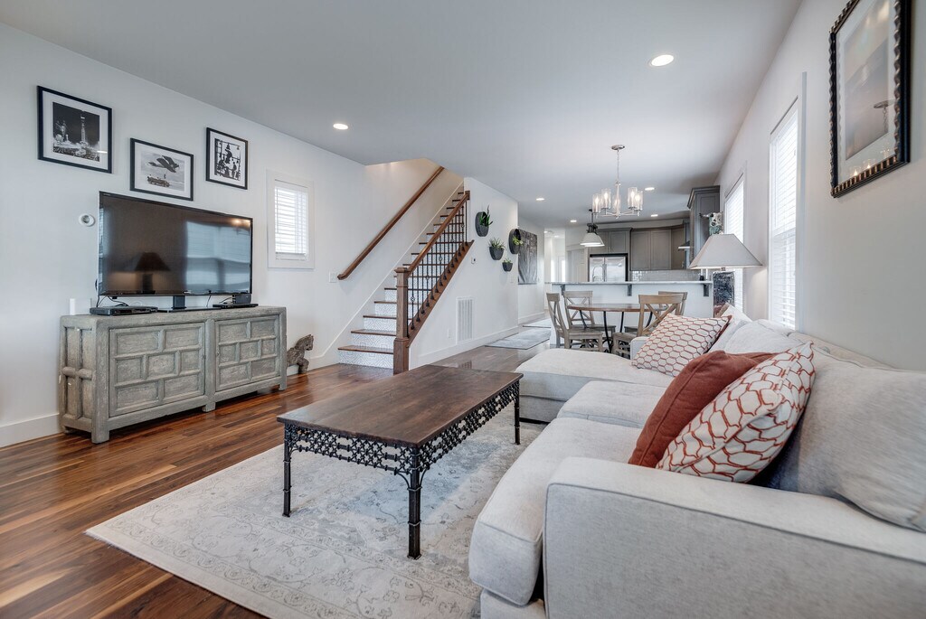 3 bed / 3 bath house for rent in the heart of The Nations. Walkable to all the restaurants, breweries, coffee shops, gyms, boutiques and parks that the neighborhood has to offer. The home boasts ample outdoor space with 4 porches, gated front and back yards, a large kitchen, closet space, a rare walk-out storage area and a covered 2-car carport. Enjoy sweeping views of Nashville from the top balconies. All appliances (including washer and dryer) are included. Tenants are responsible for utilities, landlord will cover lawn care.