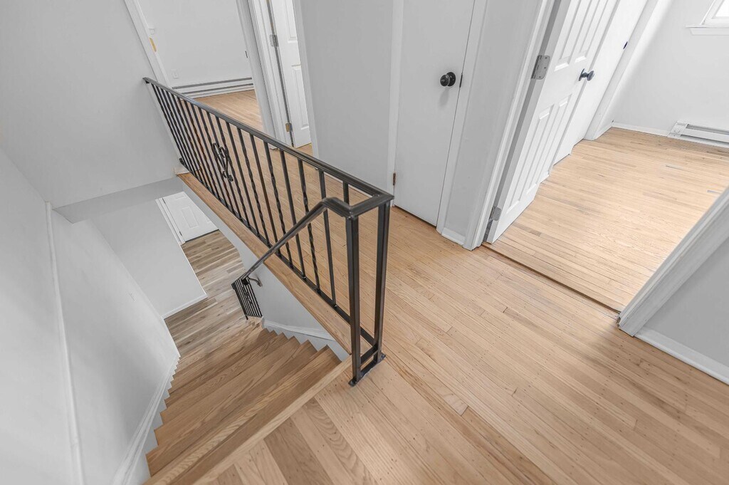 Beautifully renovated 3-bedroom, 1.5-bath home offering bright, comfortable living in a convenient residential location. The main level features a spacious living area with new flooring, recessed lighting, and large windows that fill the home with natural light. Upstairs you’ll find three generously sized bedrooms with hardwood floors and ample closet space. The fully updated bathroom features a modern double vanity, stylish fixtures, and a tiled shower/tub combination. Fresh paint and updated lighting throughout give the home a clean, modern feel. Additional highlights include baseboard heating, off-street parking, and a private entrance. Conveniently located near shopping, restaurants, and major roadways, this home offers a great combination of space, updates, and everyday comfort.