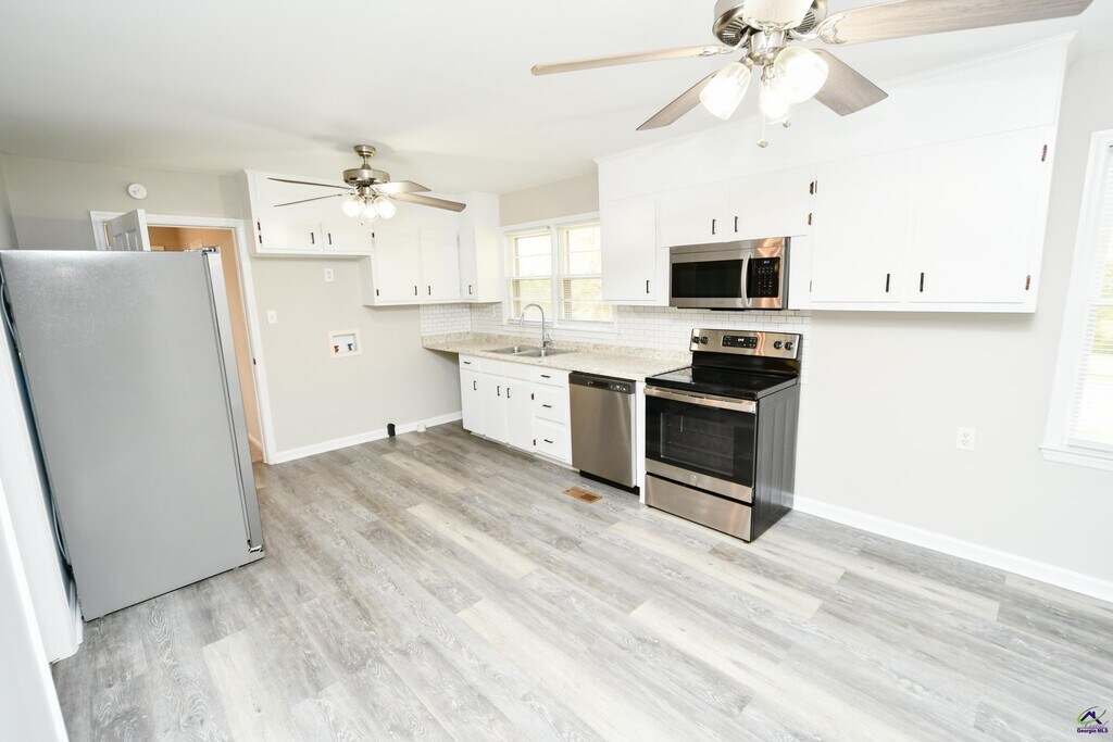 Remodeled 4 Bedroom, 2 Bath Home on 2.48 acre lot in Bonaire! Freshly painted, LVP flooring throughout, carpet in bedrooms, stainless steel appliances, new fixtures, new countertops and more! Zoned for Veterans High district. Convenient commute to Robins AFB. *Minimum 2 year lease* **Rental Requirements: Minimum 625 credit score, acceptable debt to income ratios, employment verification, past rental references and criminal background check for anyone over the age of 18 that will reside in the home. NO CATS. Dogs allowed with owner approval. $250 nonrefundable per pet fee. Minimum 2 year lease. MLS ID 261651